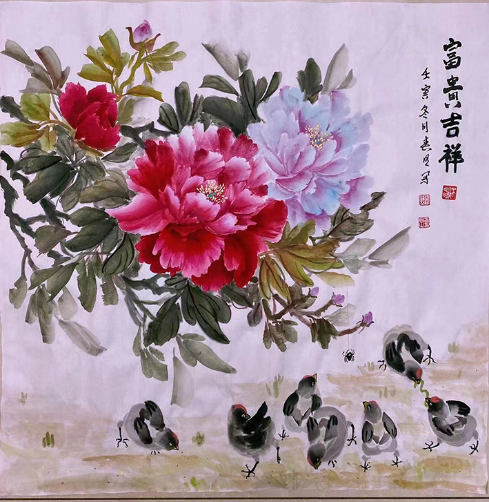 作品牡丹《富贵吉祥》被韩中文化交流协会收藏,2017年天津牡丹杯国际书画大赛获优秀奖,2019年参加天津第二届国画牡丹青年艺术展入选评为三等奖,作品《青之曲》入选天津首届花鸟画大展,作品《秋韵》入选中国名家展,《春天里的牡丹》选入天津第十届美术展获奖,并且受到专业名家的高度好评。