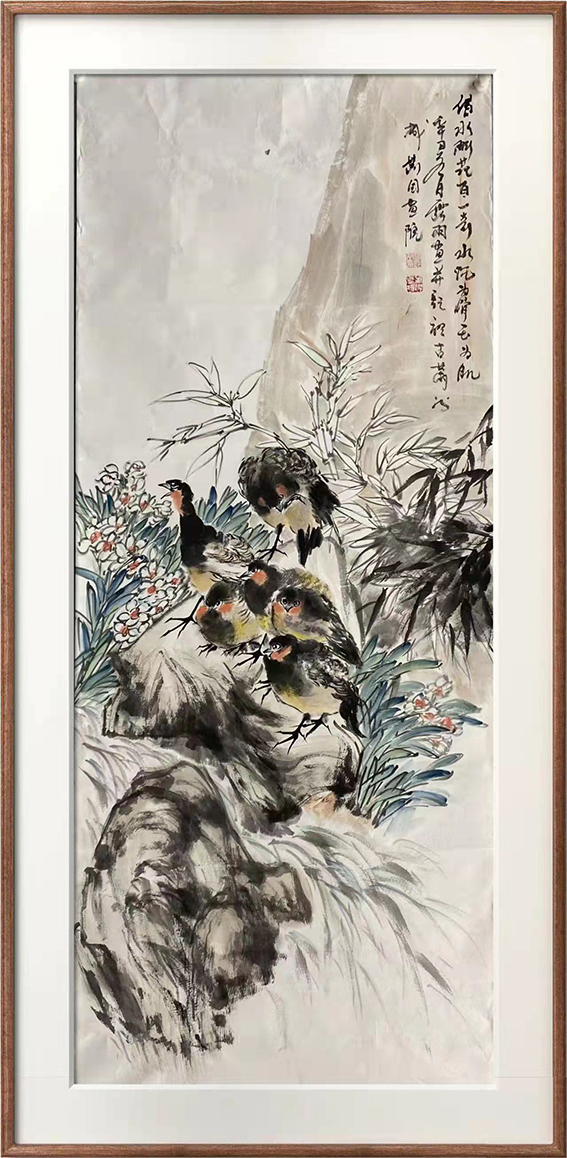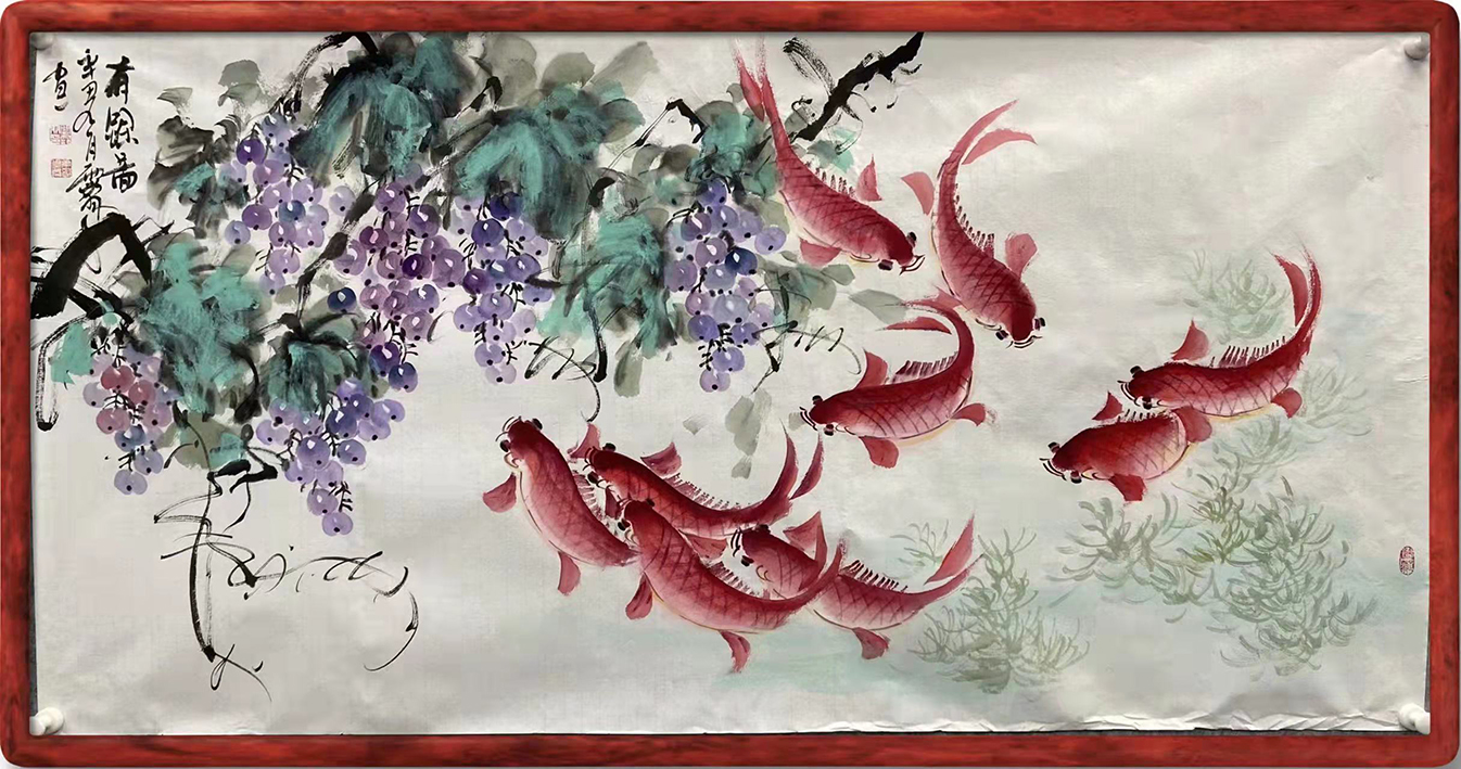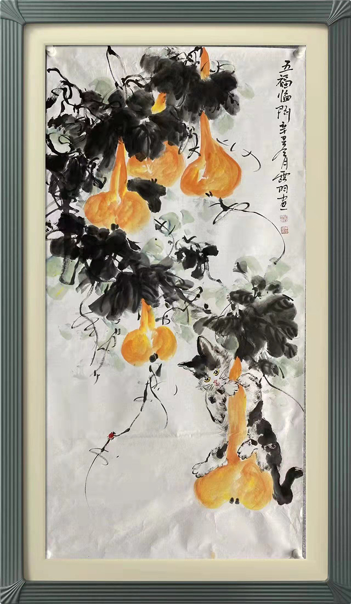 其艺术以大写意花鸟为主,山水、人物、工笔兼擅,受到很多收藏爱好者的喜爱。获奖作品(五福临门,连年有余,紫气东来,硕果累累)