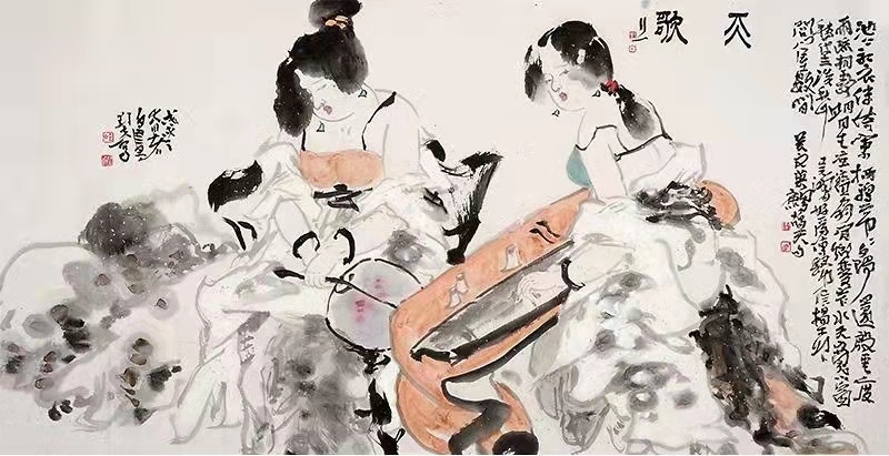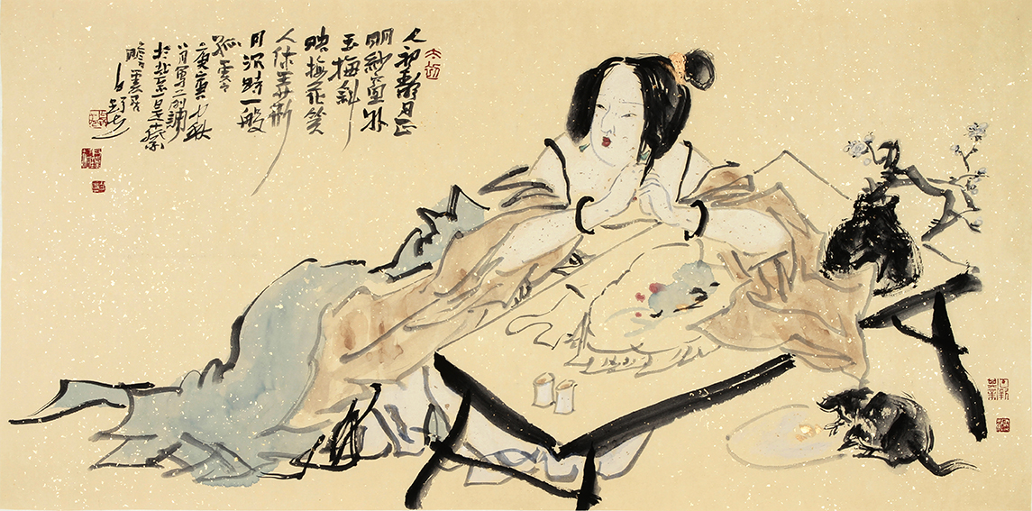 在白野夫的仕女画作品中,女性本身作为绘画的一种符号,通过其“幽媚均停/冷艳超迈”的艺术风格。他的作品塑造出了一系列看似身处当下、时尚风华,却又拔俗超尘、孤高卓然的新妇形象,使整幅画面呈现出一种超然圣洁的精神境界。这是白野夫艺术作品能够中西合璧、融会贯通,备受美术界和国际艺术基金会青睐的原因之一。他的艺术植根中国根性水墨,融汇中西审美差异,在时代的当下,凝结出了璀璨的艺术之花,得以在国际艺术界绽放馨香。