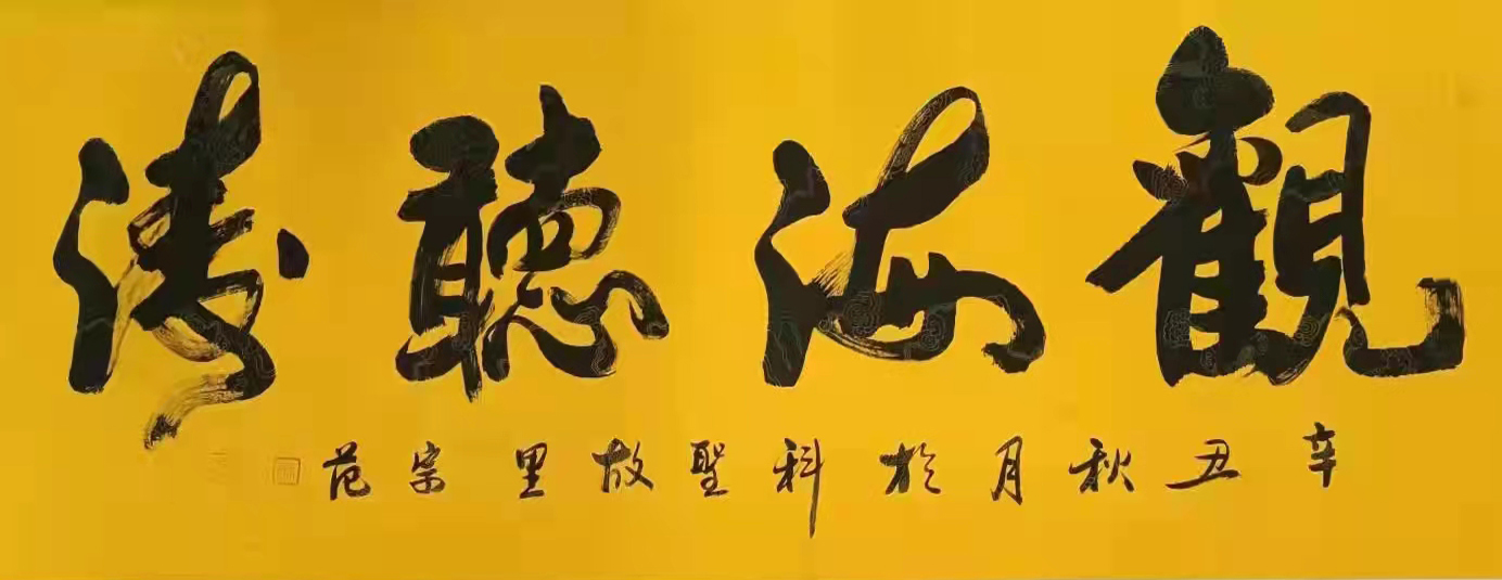 在人民大会堂召开的中国第九届“中华大地之光”征文领奖大会上所书贺词受到与会人员和布赫副委员长的肯定和高度评价其书法《观海听涛》并于收藏。