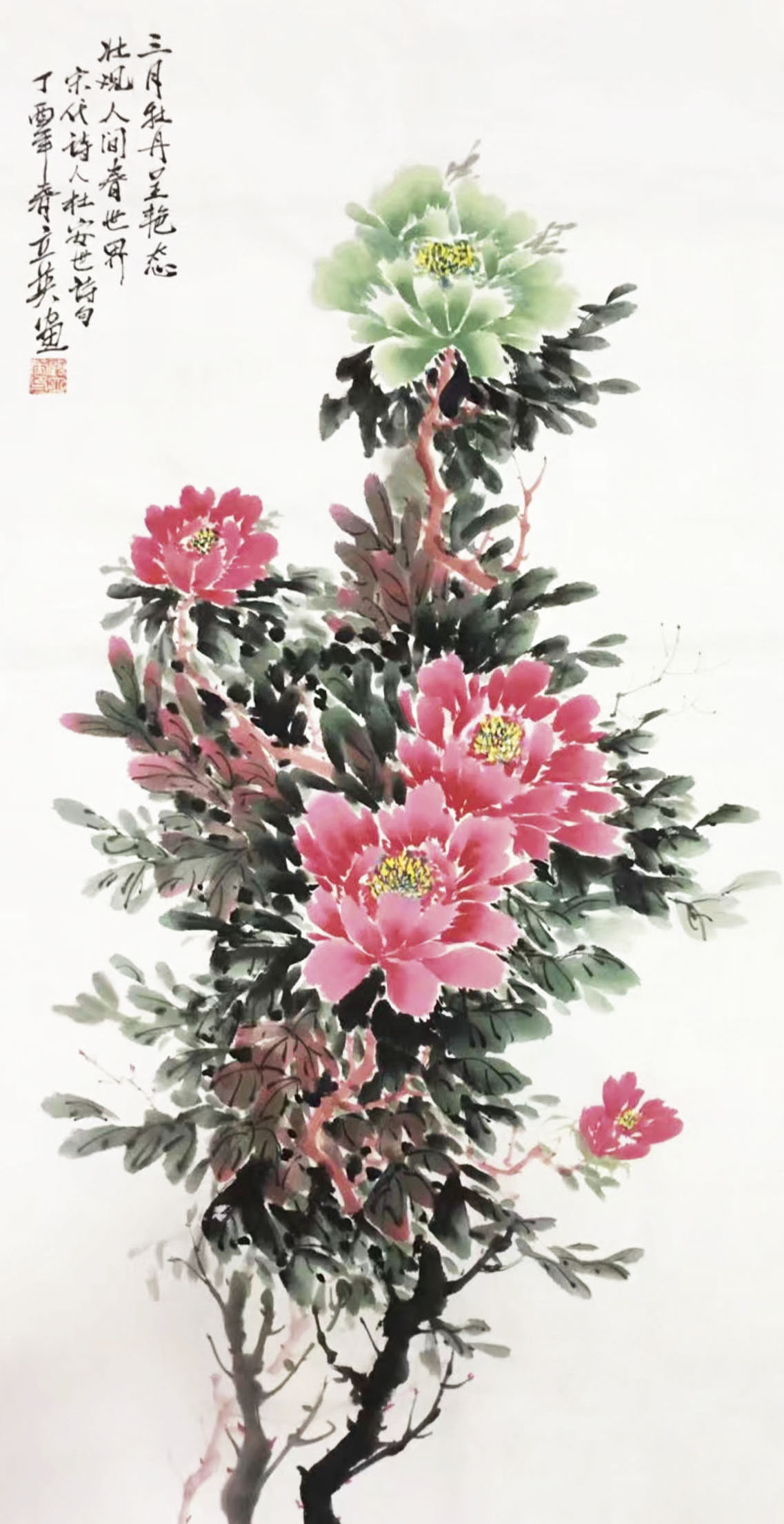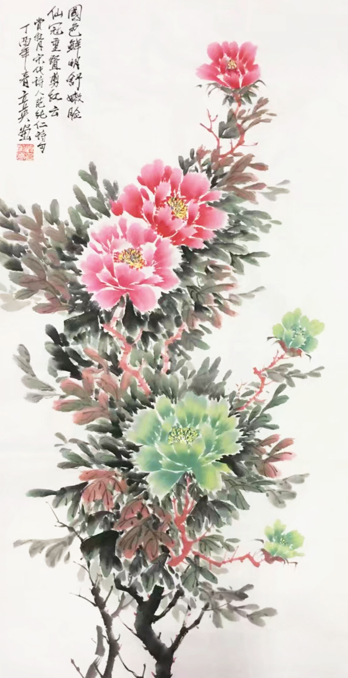 中国画传承到今天,技法流失的现象已经相当严重,纵观画坛,近乎很难再见到富有传统韵味觉感的作品,不守传统,旨糟技浮。中国画的传统正品,非常需要有人以超质作品匡扶时代,用传统的主旨的技法,让人们重温中国画的东方意韵醉美。很显然,著名画家顾立英先生,就肩负了这样的艺术使命,他是一位痴心绘艺的艺术家,精修专技,并且执守传统,回归唐宋元明,成为画坛师古大成的典范人物!鉴别一位画家是不是有传统真功力,牡丹画题可为试金石。俗家画牡丹,形态可成,韵味不足,笔法可修,彩技不佳。也就是“画牡丹还有模样,却无品位”的结果。顾立英画牡丹,绝非俗家功浅,而是笔墨直追艳雅气质,充分体现了艺术家画牡丹形韵双得的艺术全能。他的牡丹以小写意为主体画法,追求的是妙在似与不似之间的和谐恰当,传统精英画家的笔法与墨韵体现方式,被他全悉把控,勾线显动逸,无风显生动,色彩趋悦目,艳雅成馨香。因为笔法与彩韵有相当强大的艺术表现力,所以生发出强烈的艺术感染力,观赏这样的牡丹作品,感觉到的不仅仅是画法的精致,还在于格调的传统雅观。更为可贵的是,顾立英的牡丹画在承接传统功力的框架下,又非常重视当代人审美取向与古人审美取向上的变化与差别,在色彩的铺陈上更显丰富多彩,彩意饱满,盎然悦目,把绘画牡丹真正提升的“美之术”的高度,画面的美观质量极显突出,富有张力与吸引力的牡丹风情,在自然牡丹园里或许看不到,但是在他的牡丹画里却可以体味得到。功出自然超自然,这就是顾立英先生师古传统,却不趋拘泥的创建之功,也是笔墨紧随时代审美的典范进取。所以从牡丹画的高端品位来论,顾立英就是一位传统正宗丹青文化的继承大家,当然也是开拓进取,不限于旧范的执着前行者!当然,要体会顾立英艺术作品传统正宗的艺术魅力,除了看他的牡丹作品,还应该看他的山水作品。花鸟与山水,中国画题的两大代表门类,得一门可方家,得两门绝然是大家,顾立英花鸟山水双功,大家之功,牡丹画以艳雅为功,山水画则以士风为能。