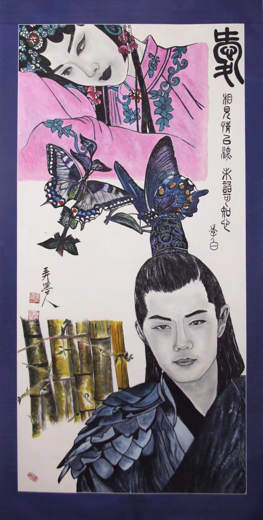 2017年——2018年两年,与中国诗书画院院长马牧老师合作,弄墨人画佛,马牧作诗并写对联。