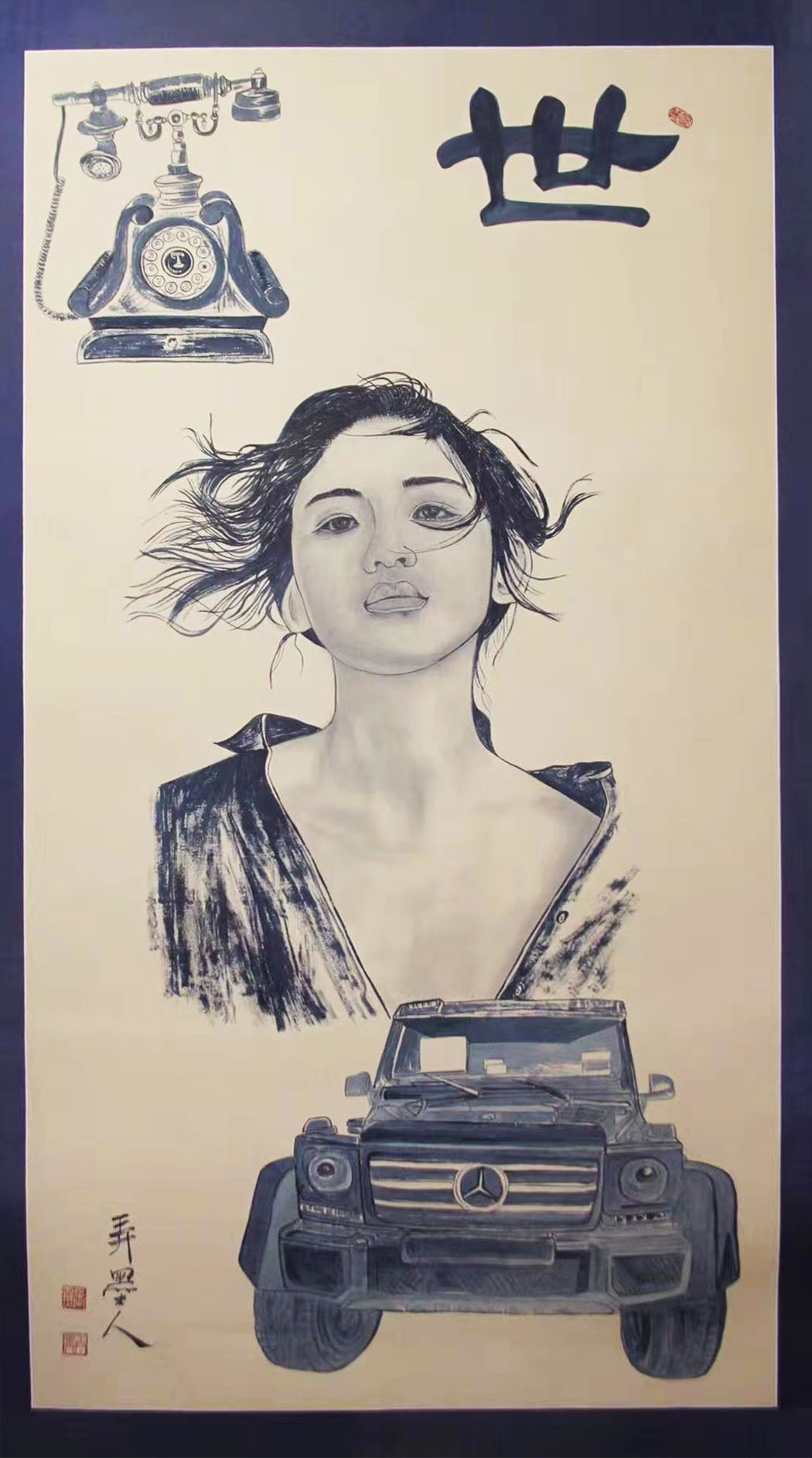 用中国的笔墨方法在生宣纸上:融入水墨精神,自配颜料:画出西方油画及素描的效果,独出心裁,别具一格的中西合璧的首创作品。