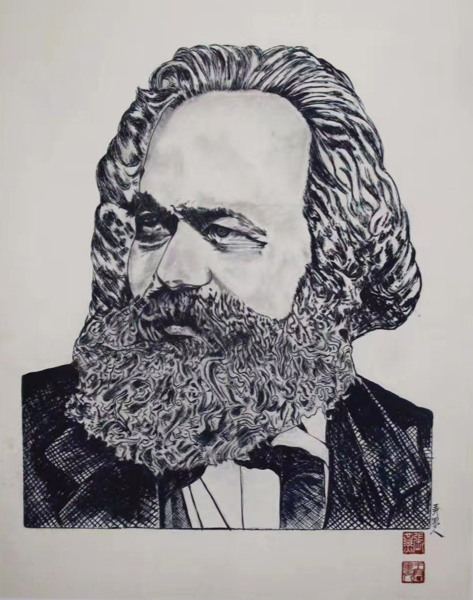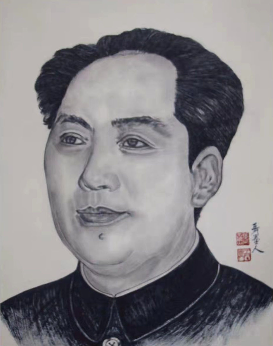 2018年12月22日 在北京湖南大厦举行纪念毛主席诞辰125年大会,弄墨人受毛主席诞辰125周年组委会的邀请:为毛主席的女儿李纳画主席像一幅。由他书法继承研究院院长沈德福先生在上面书写毛体书法《数风流人物还看今朝》。
