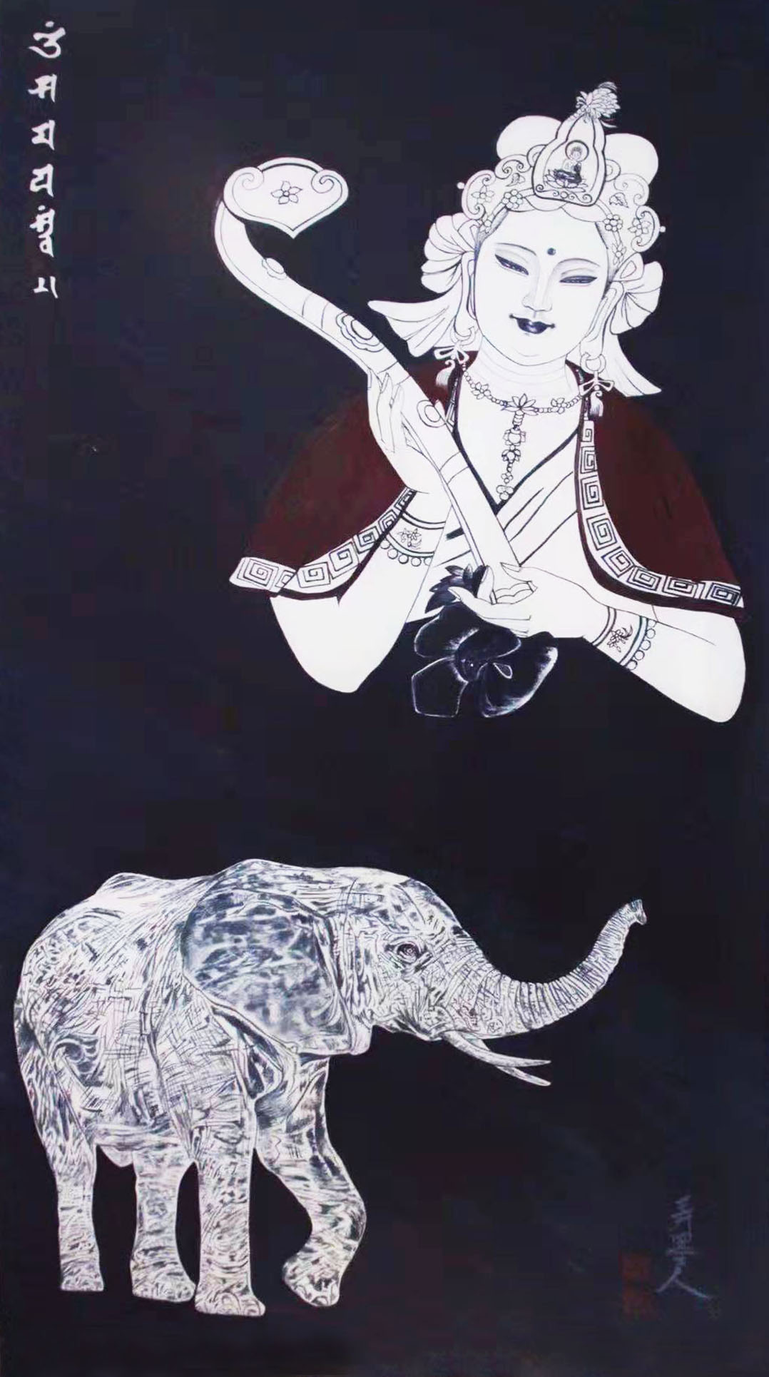2017年10月为江苏省七星级酒店禅室画佛一幅。