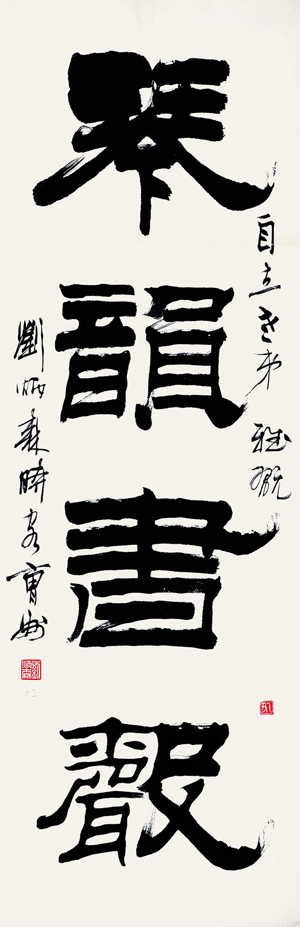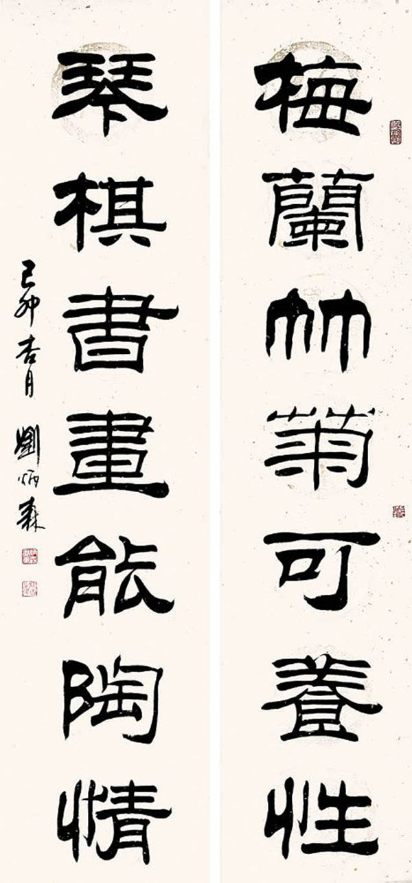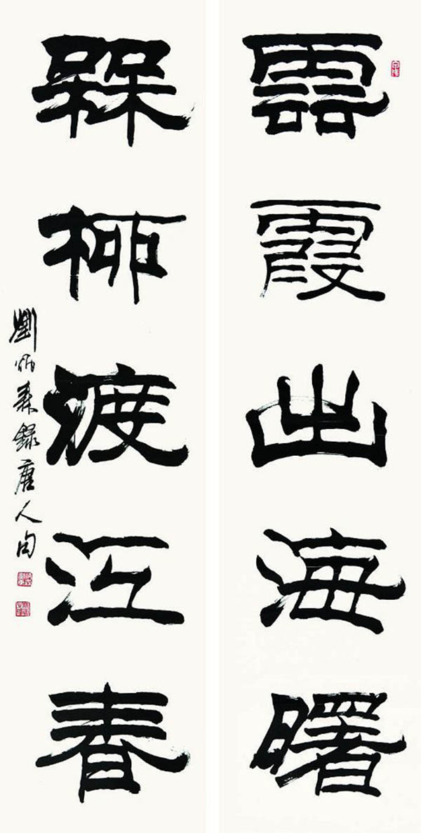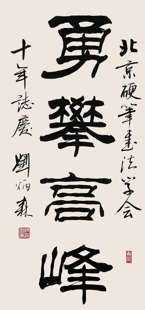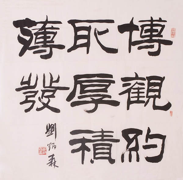传统功力深厚,书艺向以隶、楷著称于世,并兼长行、草。隶法在坚实的传统功力基础上,充分发挥了自己的创造性,用现代的审美意识并参以姊妹艺术的某些韵律和情趣,加上文学素养,形成了鲜明的个人风格,在当代中国书坛上独树一帜,世称“刘体隶书”。