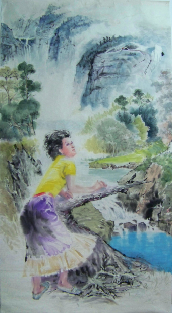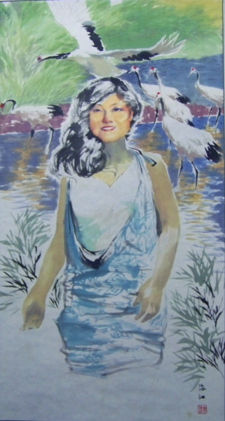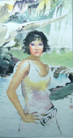 我们的中国画人物画,从古到今基本上是屏蔽色彩的功用,限制色彩发挥向西画那样的多向度。所以开放改革至今中国画人物画色彩激烈的探索后仍始终步覆蹒跚,象林凤眠先生以突击队的精神牵领色彩在中国画人物画领域里打天下,致力于中西融合,可如今仍不能“茁壮成长”。 所以我们感叹中国画人物画没色彩时,又不免有几幅艳丽作品没有让我们忘记“林凤眠式” 还存在。这种不死不活的状况在我看来是没有真汲取西式画的营养,我们的中国画有了些色彩,甚至象黄永玉先生的色彩都没有一个灵魂的东西,那就是色彩的阳光感缺失。冯海江的中国画现代美人图,在这一方面给了我们榜样性的典范,一种可以真正意义上的中国画色彩宣言。