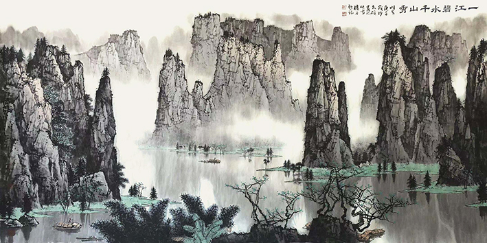 师承白雪石、陈少梅先生,对南、北宗山水均有研修,兼收各类画种之精华,作品具有宋画之严谨,元画之轻快,水彩画之秀润,版画之纯净。其山水画,追求宋画的精密逼真和文人画的意境营造,章法谨严,刻画精道,笔墨遒劲,境界开阔,用笔稳重。在水墨设色上参以山水西画光影效果,以写实来抒情,富有诗情画意,体现了悠远的传统意蕴与深沉的生命体验。所绘漓江,青翠、明净,一如琉璃世界,充分表现出唐代韩愈所咏:“江作青罗带,山如碧玉簪”的秀美意境。因其作品呈现出清新明丽、雅静恬淡、朗润旷达的文人韵味,为国内外人士称道,深受广大书画爱好者喜爱。