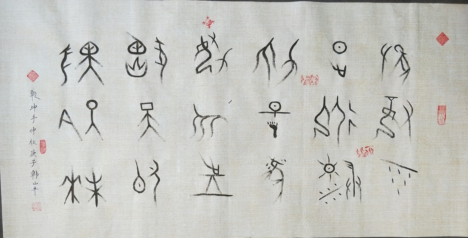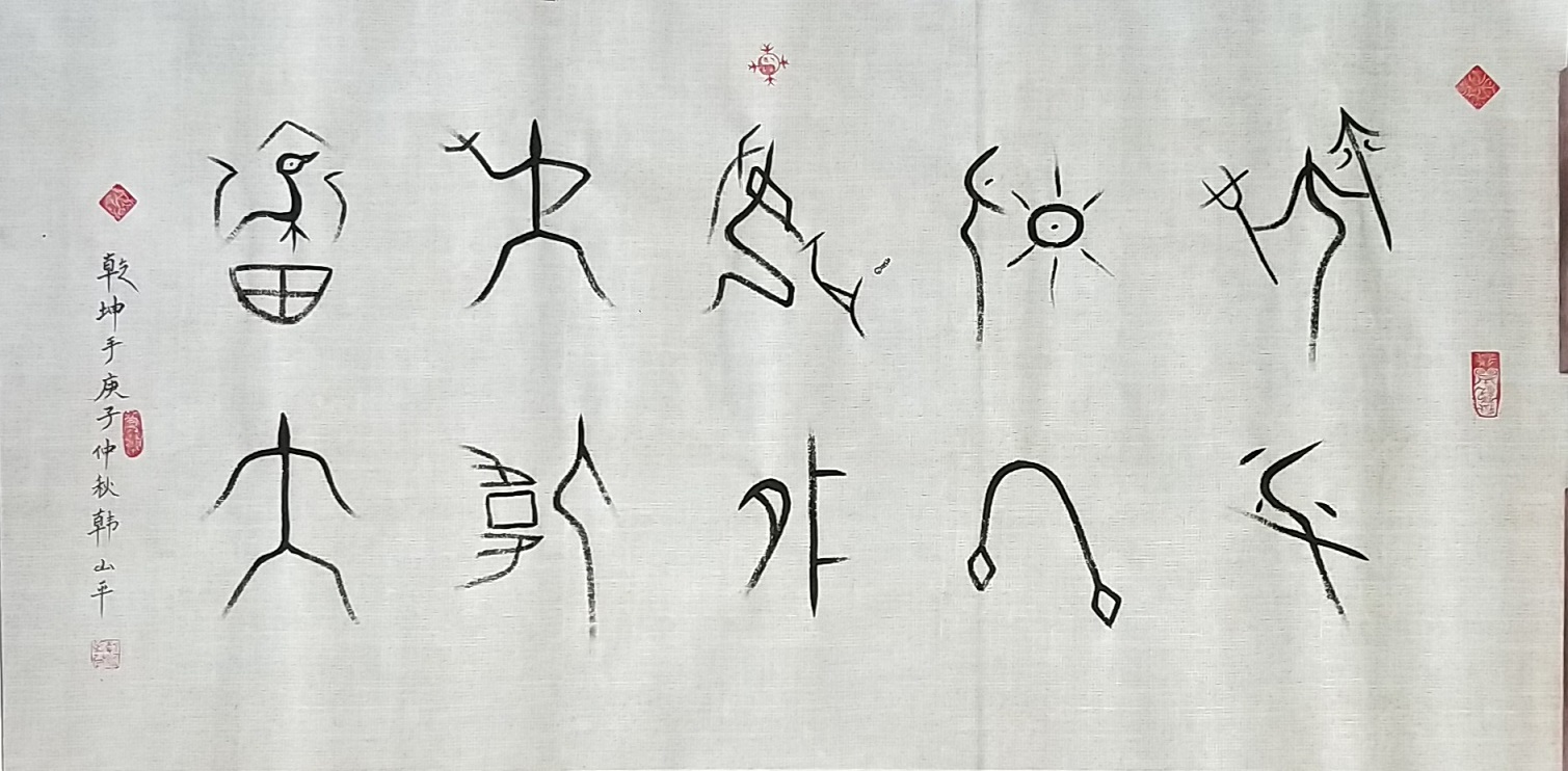 韩山平,笔名:乾坤手。祖籍河南许昌,现住河南省平顶山市,其祖上是雕刻师。之后,雕刻艺术在其家族一直在传承,传至韩山平,其把雕刻艺术和印章完美相结合,且融入象形文、甲骨文……等多种古老文字,创意了一种画中有字、字中有画的全新印章风格。其手法大胆、出人意料、意境幽深,创作出的印章内容丰富、动静结合、刚柔共济、叙事结合、阴阳互动。因此,其印章被世人所喜爱并且肯定,称附有“东方之魂”,使得其在篆刻界:独树一帜。