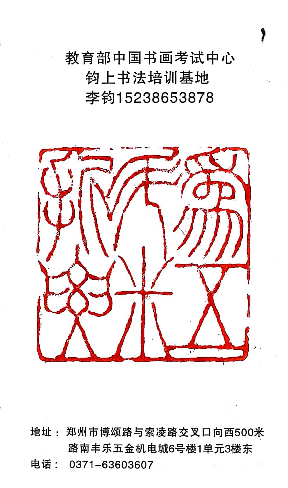 郑州市博颂路丰乐五金机电城6号楼1单元3楼东,钧上书法!15238653878