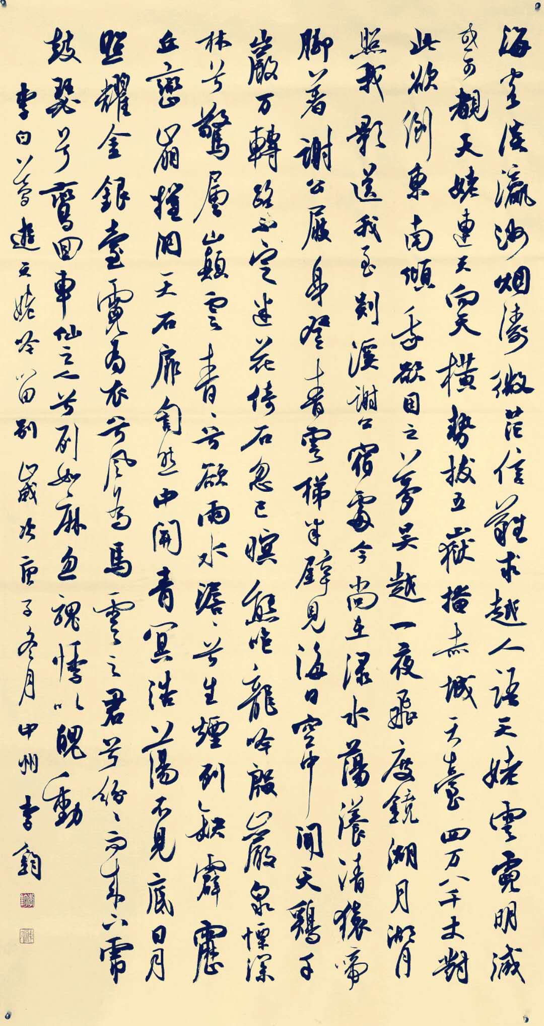李钧,祖籍古河阳人(今河南孟州),1972年出生,后定居古商都(河南郑州);自号希夷堂主,幼承家学,受父亲研习书画的熏染,自幼喜描摹,爱字画。早在小学期间就尝试篆刻、临摹连环画册;对书法亦极具兴趣,身若桌高,逢春节来临,观摩书家春联创作,乐意不觉,废寝忘食。通过不断学习和自身努力,现为教育部中国书画考试中心钧上书法培训基地主任。中国书画等级考试书法及硬笔书法双九级合格者;河南省书法家协会会员,中国硬笔书法家协会会员,郑州市书法家协会会员,焦作市美术家协会会员。本人书法教学为主,以传承中华文化为首任,尊崇传统经典;楷书以欧阳询为基调,揉入褚遂良的灵动流畅,刚健飞动;隶书以《曹全碑》、《乙瑛碑》为脉象参以邓石如笔法,追求浑厚华润,格调高古;篆书以吴让之为根基稍加变化;行书长期沉浸米芾与二王,以沉着痛快的笔触抒发胸襟;小行书以赵孟頫、米芾为基调,灵动多姿,尽可能体现儒雅之气。艺无止境,学海无涯,求新不忘传统,未来的路还很漫长。