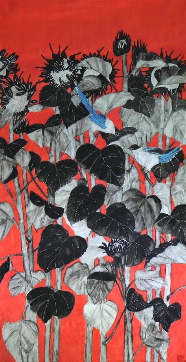 画中娇艳正逢春。