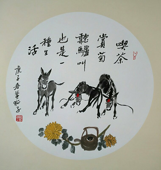 画驴师从黄胄隔代传人王文明,作品结合新闻职业和学识,结合熟练的书法,创造出了集新闻时事,文史哲言,诗词歌谣等画中题款独特方式,具有文化驴之气象,属诗,书,画三联艺术,其这种文画融合的文化驴画在全国应属首创。