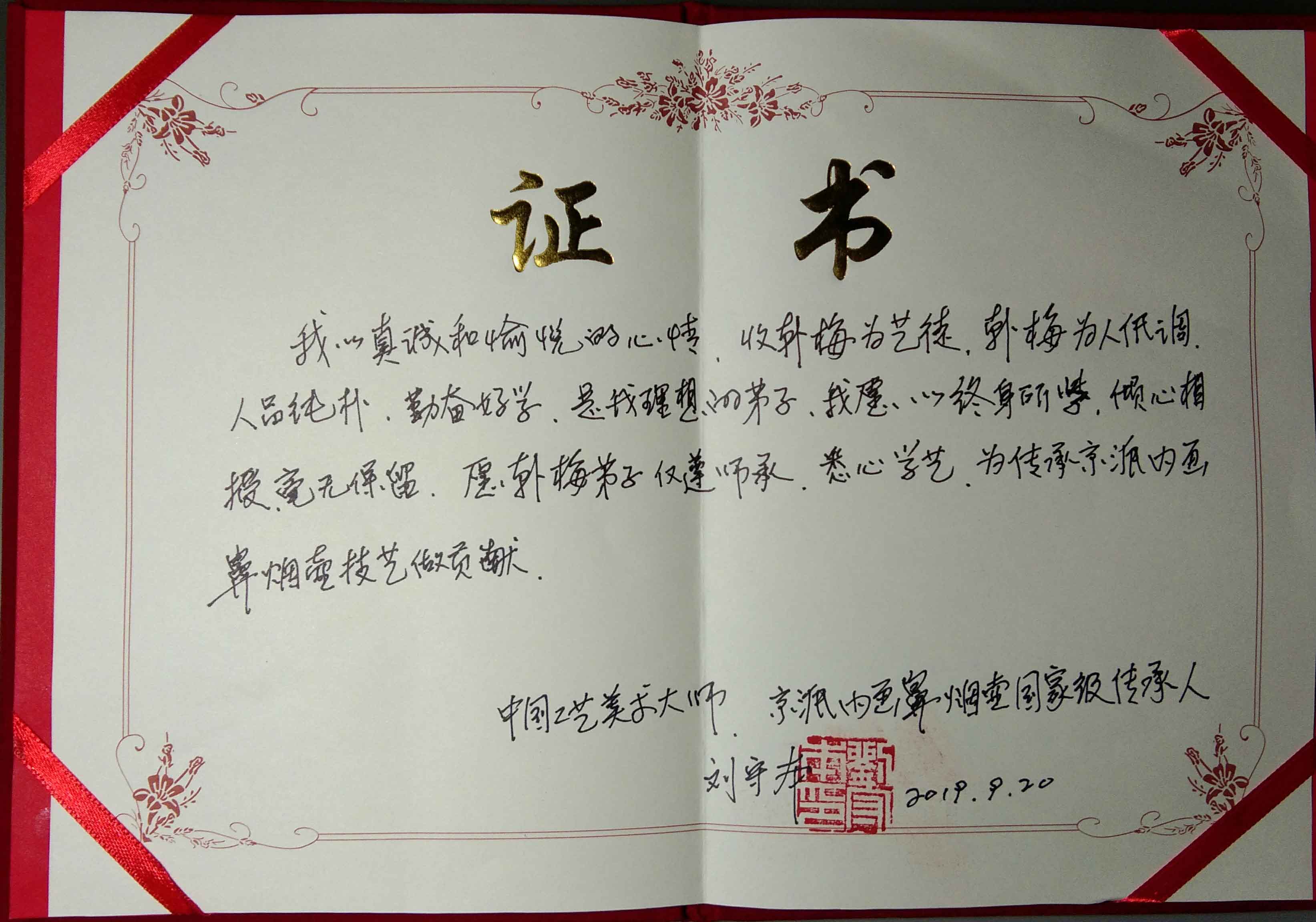 2019年内画作品《雪堂客话》荣获“百花杯”中国工艺美术精品奖银奖;