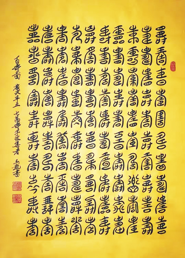 他历经近四十个春秋,把散见于我国浩如烟海的典籍、书画、碑刻、文物器皿及出版物上的七万余个异形“寿”字、寿字图文搜集起来,经过认真整理、电脑绘制、校对,汇编为《中国寿字集锦》。它浓缩了中华民族悠悠五千年“寿”字文化演变发展的历史,凝聚着中华民族的精气和元气,记载了华夏民族“寿”字文化、“寿”字艺术,是中华儿女智慧的结晶,它充分向世人展示了中国汉字中一个“寿”字的悠久历史和博大精深的文化风采,是中国悠久文化的艺术瑰宝、中华民族独有的文化现象。