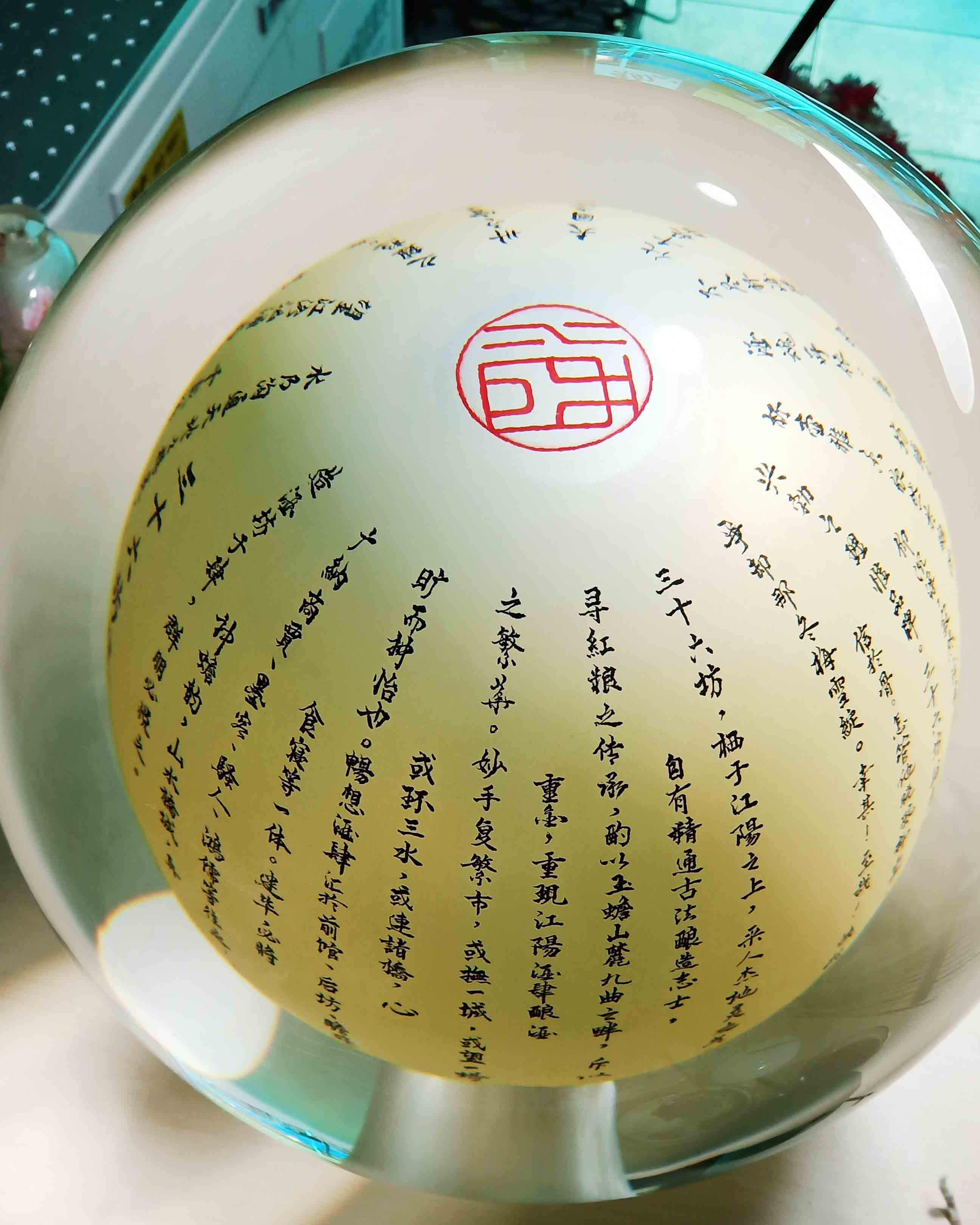 李占营:艺名凌雲。斋号润物轩。1977年生于河北省衡水市。爱好广泛,自幼酷爱书法绘画艺术,尤以动物、山水、书法、篆刻见长,又以琴棋笛萧辅之修心养性。中国内画研究院理事、河北省内画鼻烟壶协会会员、河北省内画收藏家协会会员、衡水市内画艺术家协会会员。是中国国家工艺美术大师付国顺先生的弟子,冀派内画泰斗王习三大师的徒孙,冀派内画第三代传人。除绘画书法之外,在内画工具笔的制作上,也打破了传统的做法,做工精细,用料考究精美,尤其是大号圆瓶写字用笔的制作,构思巧妙,填补了普通内画笔无法书写的空白。在大水晶球侧面内壁的书写方面,也改变了普通写法写不好字的以往格局,用超高难度的倒拿笔的方式书写,又创新技。