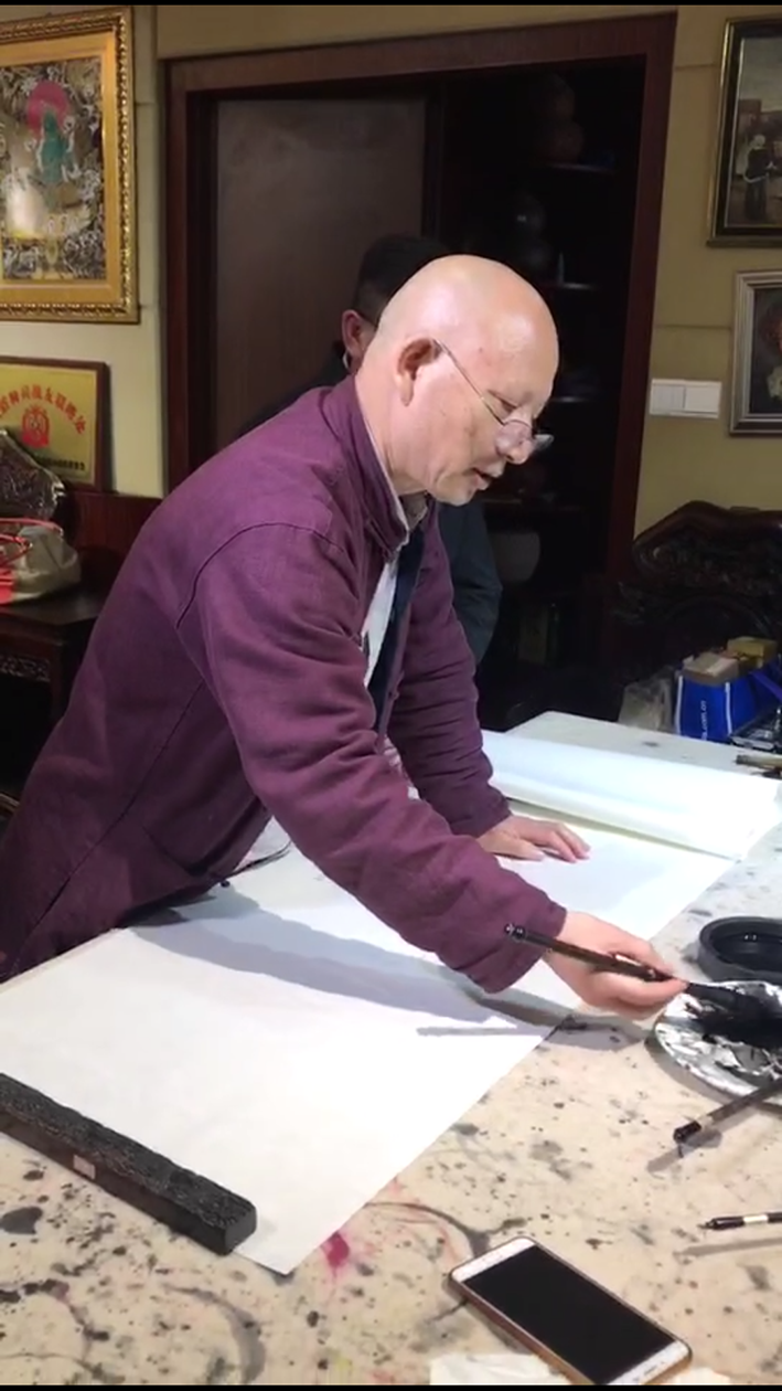 2019年,参加广西扶贫义捐书画展,创作多幅丈二巨幅画作。
