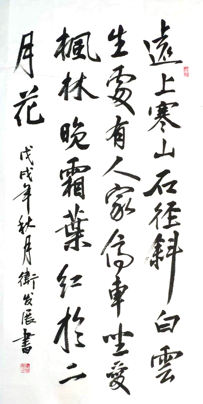 卫发展,男,汉族,1964年5月生,河南济源人。字原泉,笔名正直,号河阳居士,中共党员,大专学历。幼承祖训,酷爱书法,中年临池,笔耕不辍。楷临柳、颜,行摩二王,师承段九思、王朝君先生。河南省书法家协会会员,洛阳炎黄书画院院长。
