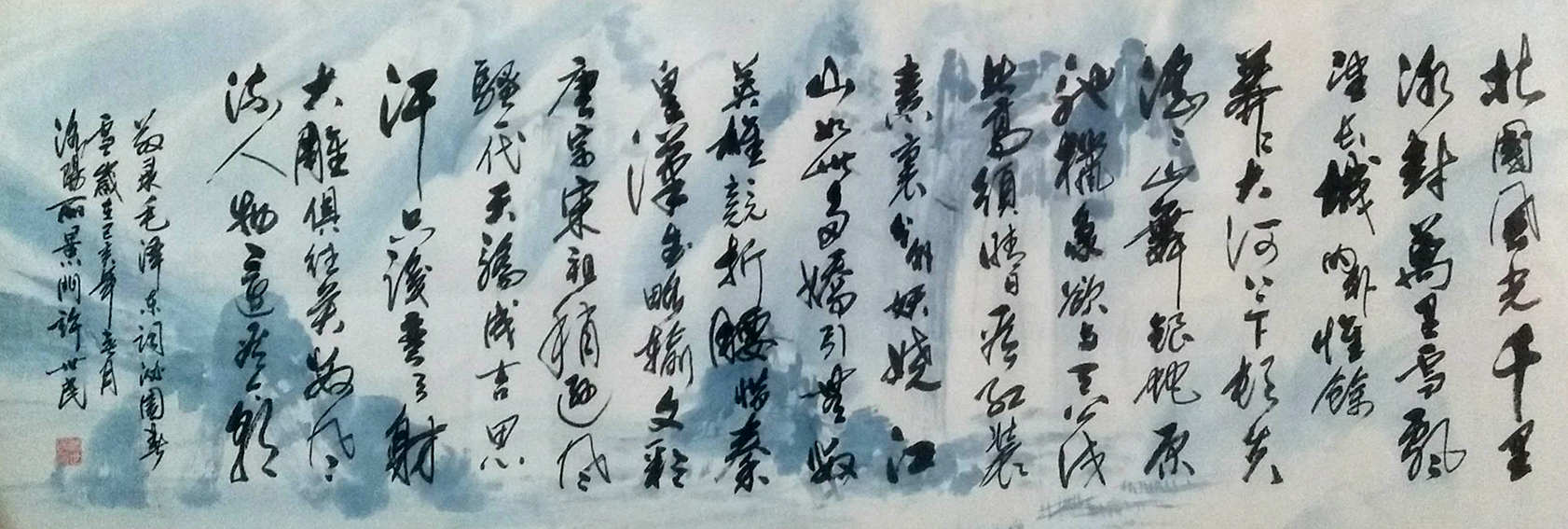 书法家许世民,字文达号周山樵夫,1947年生于河南洛阳,现为中国书画家协会会员,洛阳启功书画院院长,国家一级书法师。其自幼酷爱书法艺术,遍临二王及欧赵名家碑贴,青年时以崭露头角,进入五十岁后,潜心研究启功书体,深得其精髓,所作榜书犹显大气磅礴,作品在全国性大展中多次入围并获奖,多副作品被中外人士购买、收藏。