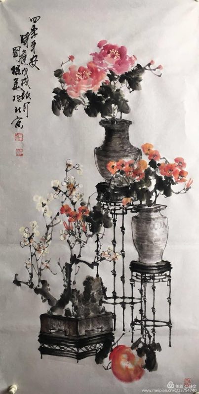 王国樑,河北省河间市人,现居北京。供职于美术教学三十余年,先后进修于中国书画函授大学、清华大学美术学院书画高研班。现为河北省美术家协会会员,北京花鸟画专职画家。其作品深受收藏爱好者的赞誉,并多次在国内外书画大赛中获奖,作品《紫韵》获香港海内外书画家精品展银奖,《硕》获黄河杯全国书画大展金奖,《多福多寿》在2018年“星星之火 可以燎原”井冈山全国书画展中获得银奖,《福禄万代》在2019年中俄艺术展中获得铜奖。