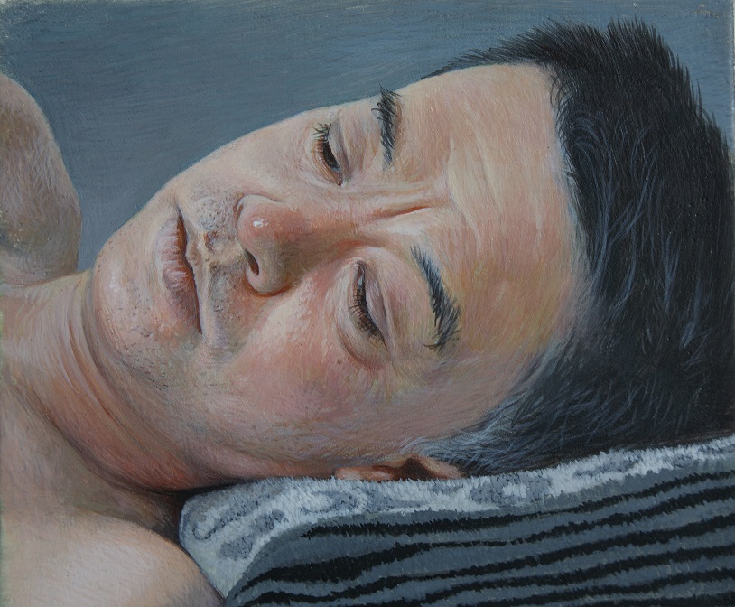 《躺着的人》薛铭10x12cm 布面坦培拉 2012年