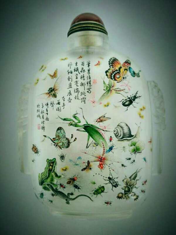 付锋,号蝈蝈居主人,中国工艺美术学会鼻烟壶研究会会员,河北省民间工艺美术大师(内画类)