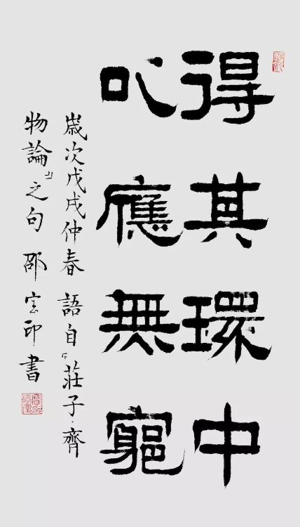 2016年8月应毛主席纪念堂二楼《西柏坡》厅书写2x9米隶书巨作毛主席词《沁园春-雪》;同时为李克强总理办公室书写隶书作品“常德不离,复归于婴”。;2015年由台北市府、台湾故宫博物院举办“登高望远”邵宝印赴台书法邀请展,展览作品全部售罄;2016年9月由法国文化部、法国巴黎皇家艺术学院在法国举办“登高望远”邵宝印赴法书法邀请展。出版《邵宝印诗词书法篆刻作品集》、《邵宝印书法作品选》、主编大型系列文献丛书《邵雍文集》、《邵宝印楷书道德经》。地址:河南省洛阳市洛龙区开元大道国宝花园-华府26楼