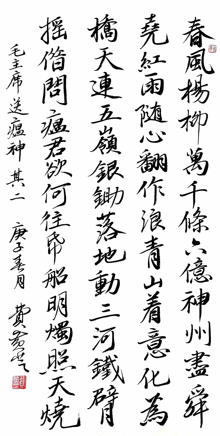 作为启功体后学他强调,书法创作要把作者高尚情操与内在追求给表达出来(既国学素养和行文作书的微妙联系)。不主张一味临摹书画,主张临摹交替进行,在传承经典之上进行再创新,最后写出个人书法风格,这样才促进文艺健康发展。文艺从来心写照,真情铸入方显妙:品鉴一幅好的书法作品时首先要让人感受到心旷神怡,字字优雅,气完韵足,点画耐人寻味,堪称上品。