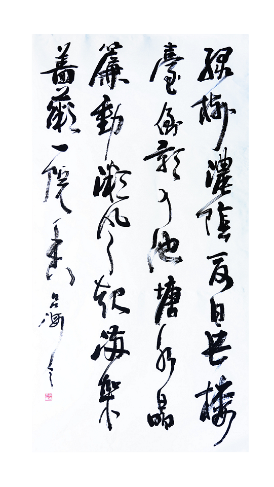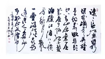 总之,吕海令的行草书承袭二王,却摆脱研媚之行草风格,而追求一种稚拙古朴,苍劲雄峻,大开大合,不事雕琢的豁达自流的志趣。这种书风在当代书法中是很少见到的。这种书体不能称之为丑书,因为一笔一划都凝聚着深厚的笔力,而书家的力透纸背让我们得到了一种险峻而不俗气的骨感之美。 吕海令虽然是一个职业经理人,但他的书法却足以令一般的书法家所汗颜。