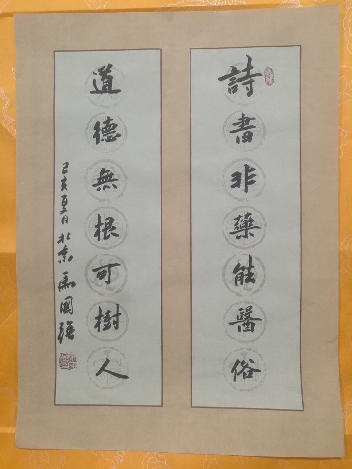 马国强,1964年出生,军旅书法家。初临二王,后临颜柳,临池不懈,孜孜以求;参加过多次展览,得过金银、铜奖多次。2008年12月,在“第三届中华神韵杯中国美术书法作品大赛”中,经组委会、评委会严格审定,荣获中青组金奖,并授予“中华书画艺术精英”称号。2009年4月,在“中华经典在古诗经典古诗词书画大赛”中参展的作品荣获两个特等奖及一等奖。2009年6月,荣获首届“翰墨颂中华”全国书画艺术大寨银奖,并被授予“中华文化爱心使者”称号。2009年11月,在庆祝新中国60华诞《全国书画邀请赛获奖作品》,并授予”红色艺术家突出贡献者”“讲团结,促和谐艺术功臣”称号。现为中国孔子大学书画院院长、教授,人民艺术家,河南咏梅阁书画院院长。