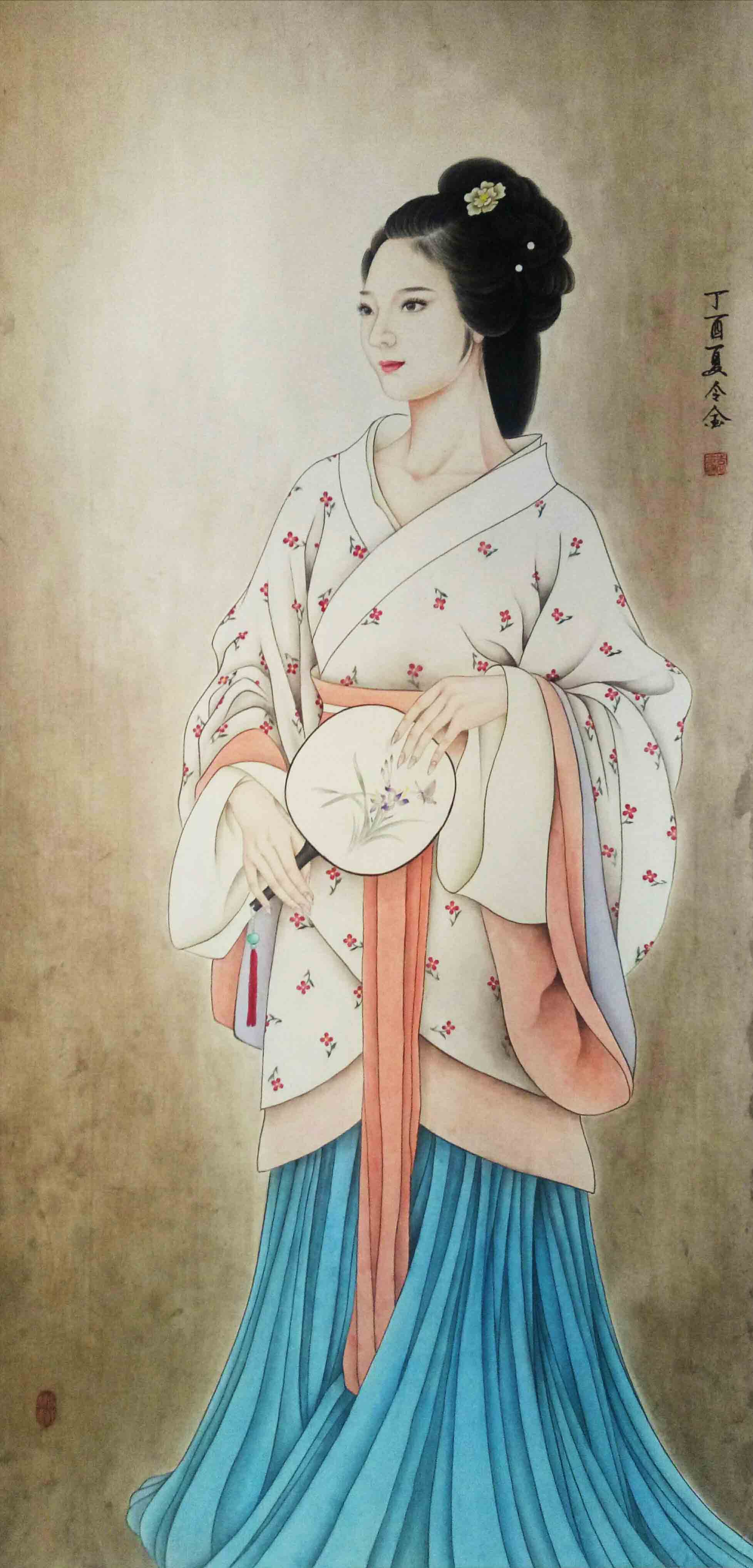 袁令金,字令锦,馨源阁主人,1981年出生于沧州,自幼酷爱美术,擅长工笔人物和花鸟,多年来一直从事美术相关工作,在学习和工作中有幸结识了沧州著名画家陈金生老师并跟随陈老师学习写意牡丹技法并融入仕女画创作中,又受到著名书法家沧州沧海书画院老院长冯玉坡老师悉心教导,作品已自成风格,工笔线条稳健,构图严谨。写意笔墨流畅,雅俗共赏。最为擅长仕女画创作,作品多次在全国参展,获奖,入编,出版,被众多书画爱好者购买收藏!