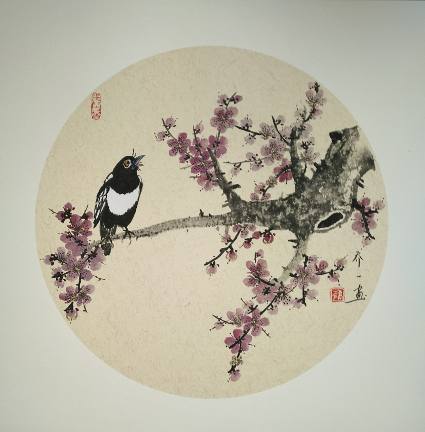 乔一自幼喜书法丹青,80年专攻写意花鸟画创作,受教于伯父--著名海派花鸟画大家乔木先生,83年以优异成绩毕业于中国书画函授大学,师从田辛蒲.杜炳申.赵士恒.张松岭诸位先生,得众家真传。其承师训多探究,又呈经随伯父乔木先生外出教学.参展,汲取各家之长而融于己用,终在写意花鸟画中脱颖而出,创自家画法之独特艺术风格而广受中国画界所推崇。乔一笔下写意花鸟画,得中国海派花鸟画之基和中国传统花鸟画理论之精髓,其擅长于色彩的运用和以书入画主旨,秉传统近现实而达雅俗共赏之化境,重构图灵动简洁而追单纯质朴之审美;笔意潇洒有度与墨色渲染得法令画面畅然淡泊,画趣抽象幻化始于自然又足使诗韵洋溢万分;尺幅之画,悠然品读,便使您顿然有身临至美画境其中之无限惬意。乔一写意花鸟画,重章法与构图的和诣,主次虚实携疏密阴阳众呈画旨。其作画意在笔先,挥墨浓淡干湿带设色润泽五彩缤纷而不拘定法,常出妙意思绪与心法至上佳作。他所作<<平安图>>便诠释了以上画技诸法:图中翠竹挺立,竹节用笔疾缓相融出刚柔并济之势;竹叶以书法挥就,中侧锋笔笔气神兼备,在充满生机的新笋和皴擦清秀的奇石簇拥下,酷似在微风中摇曳而生发多姿之态;两只红嘴蓝鹊,这只攀竹枝而鸣,那只却振尾登石而望,动静互衬又形神毕现而成就点晴之巧,令画格畅顺之通幅画眼,有力彰显了画者欢快心情的艺术渲染和深厚生活内涵的情操之寄托。众多写意花鸟画家,多抒意境而失细节,令视觉冲击力大打折扣。乔一之写意花鸟画,为两者得兼而阐述写意之神。其追求画面点染烘晕和树石苔衬诸法精湛有序,力搜笔笔皆为儒雅华美之风骨,以上诸论在其<<晚情>>画面中均有表现:以秋叶微小之黄反衬大枝枫叶燃燃如火,双鹊上下呼应瞬现老年夕阳般壮美之追求;画面简洁而寓意宏大,一枝一叶无闲笔,一色一墨抒真情,实为大手笔而为之。此画中有传统的起承传合和点线面的协调,亦有写生实践的探求及参悟,得法破法又觅法,游于心而澄怀忘虑,乔一,实得画风真谛之禅意而独享在自己的笔墨大境界中。