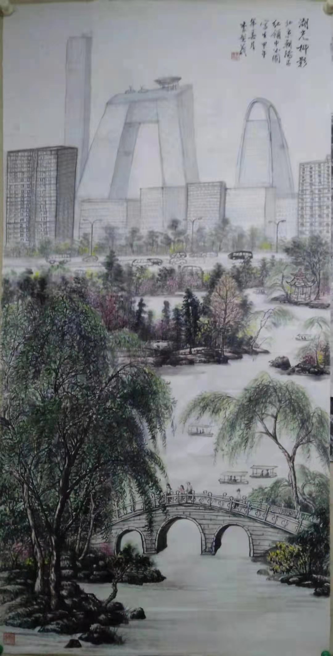 北京团结湖写生 138cm*69cm