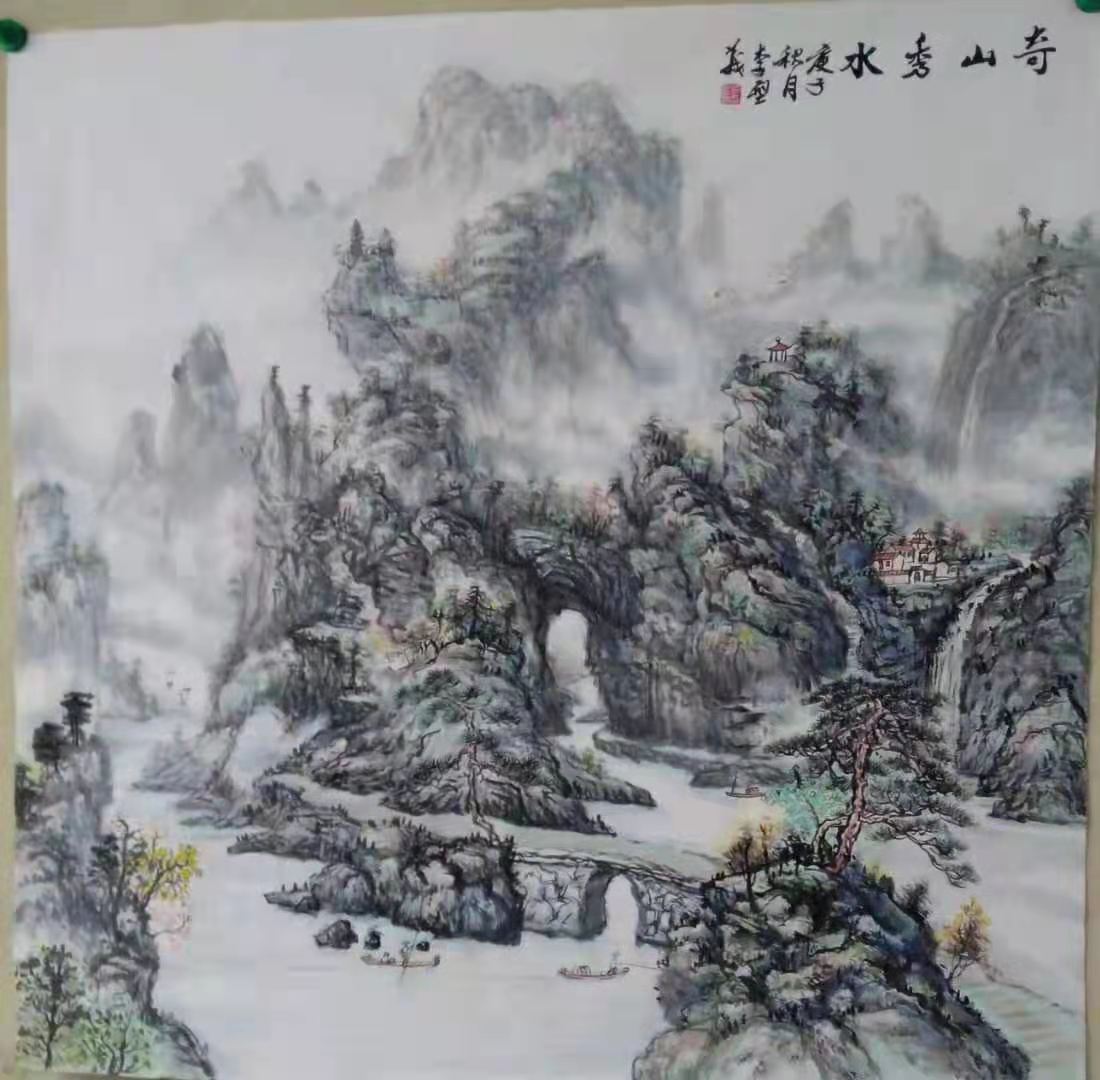 李型义的山水画,犹如引你去仙境旅游或探险,通过小桥流水到山下小山村,走曲径,穿层林,穿云雾,过小溪,崎岖小路达峰顶。看群山环抱,奇峰铳秀,使你眼界大开,呼山林层云之气,吸万物仙源之辉,如到仙境,使你益寿延年。李型义的山水画,深得国内外用户喜爱,收藏。不少网站,电视台,报刊杂志给予宣传展示。
