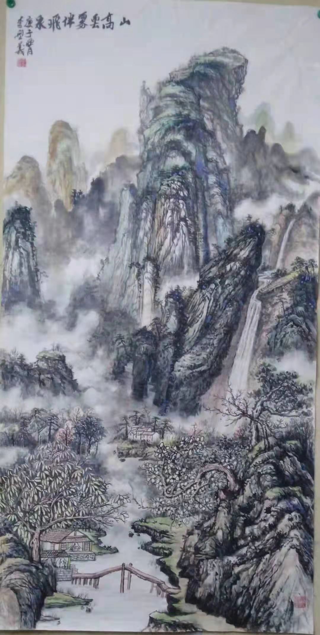 山高云雾伴飞泉138cm*69cm