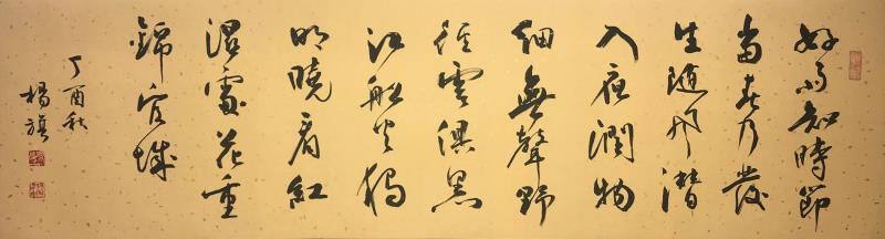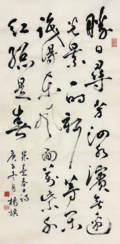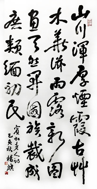 杨旗,一九六五年出生于辽宁沈阳,现居北京。中央国家机关书法家协会会员,辽宁省书法家协会会员。现任北京M3美术馆副馆长。 杨旗自幼受父亲杨泽林影响,钟情于书画。师从鲁迅美术学院徐炽、陈忠义诸先生,中国艺术研究院孟祥顺先生。研习碑帖,笔耕不辍。潜心翰墨。 作品曾多次参加省、市展览并获奖,博得国、内外藏家的青睐。