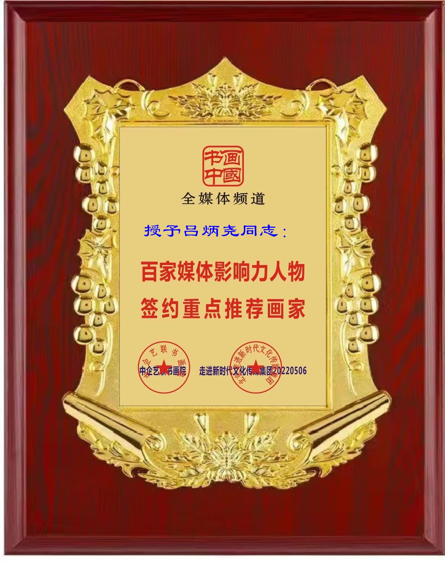 吕炳尧:中国艺术家协会书画研究会理事;中国书画家协会会员;中华国礼书画传承人物艺术家;书画中国频道百家媒体联盟影响力人物、签约重点推荐画家