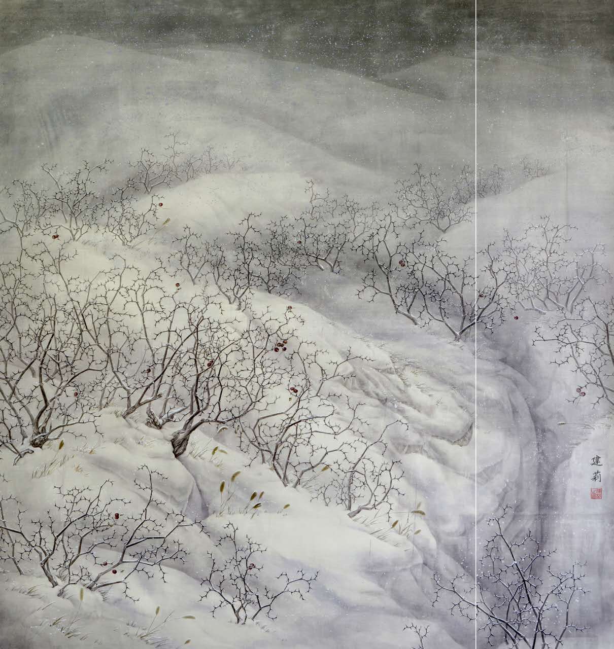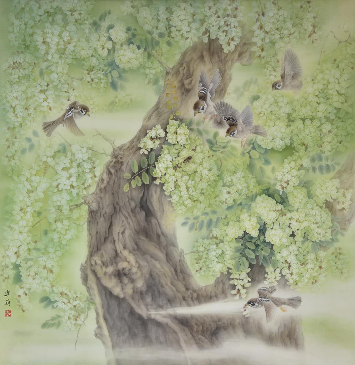 韩建莉,1978年出生,河北平山人。毕业于河北师范大学美术与设计学院。中学一级教师,河北省美术家协会会员。其作品以中国工笔花鸟画为主。在画风上继承传统,立足太行文化表达人文精神,形成了质朴、素雅的个人艺术风格。代表作有《槐香依旧》《初雪》《忆丁香》《柿子红了》等。