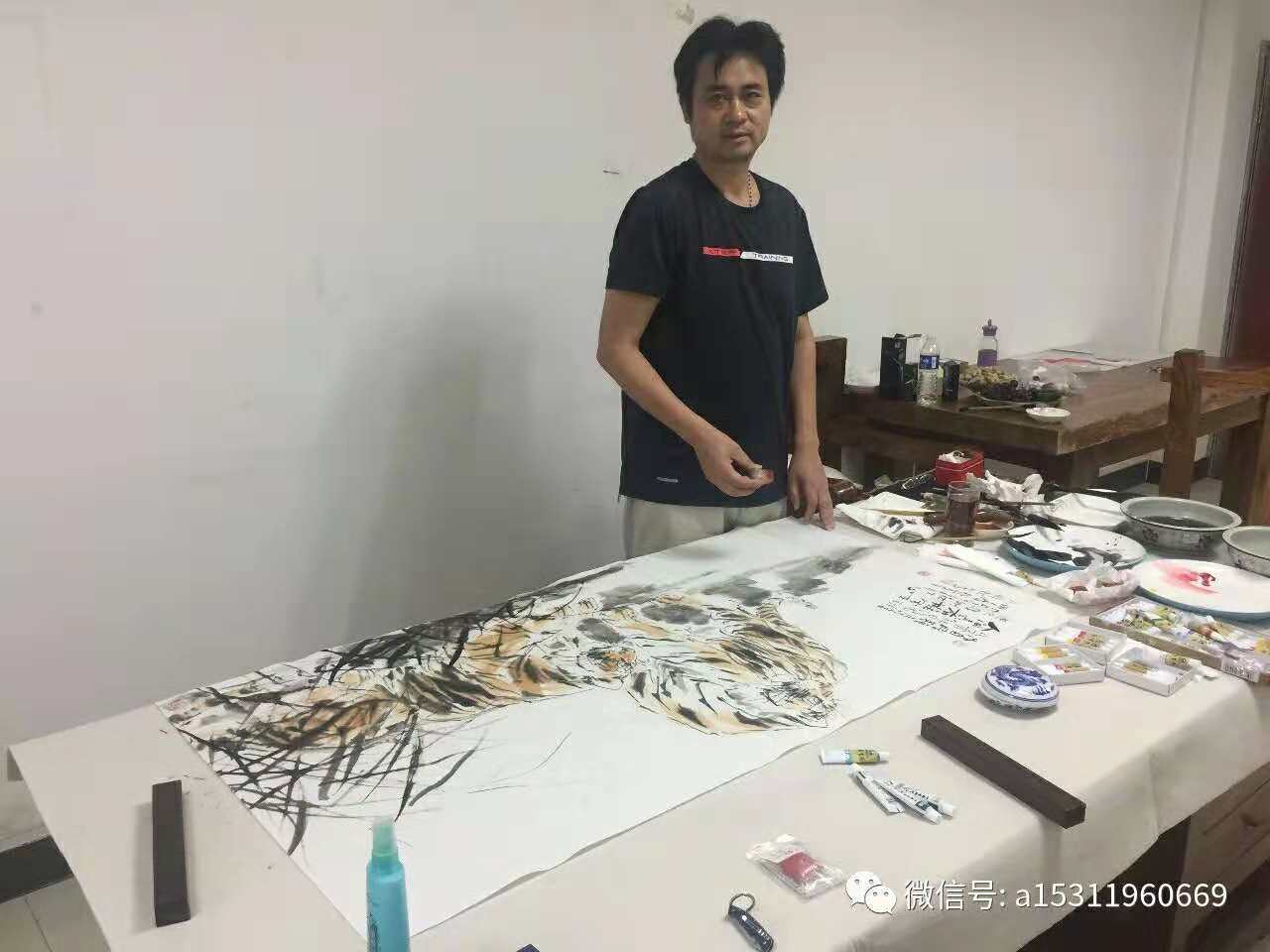 彭旺松 望虎松堂主 1967年出生于河南 商水。自幼酷爱绘画艺术,1983年底入伍,2006年底退出现役。中校军旅画家。现为中国书画艺术研究会理事,中国淮海书画院副院长,河南省美术家协会会员,驻马店市美术家协会理事。先后在团级单位任放映组长、俱乐部主任等职;军、师级单位任文化教员、美术创作员、美术编辑;曾多次在北京武警总部帮忙创作。多年来,他勇于探索,勤奋创作,1988年以来在全国各大报刊发表插图刊图等美作1000余幅;被军内外《网站》、《人民日报》、《解放军报》、《人民武警报》、《河南青年报》、《河南经济报》等几十家媒体进行了专题专版报道;参加军内外美展百余,多次获奖入选;近年来,出版专著10部。 画虎作品已形成自己的独特风格。