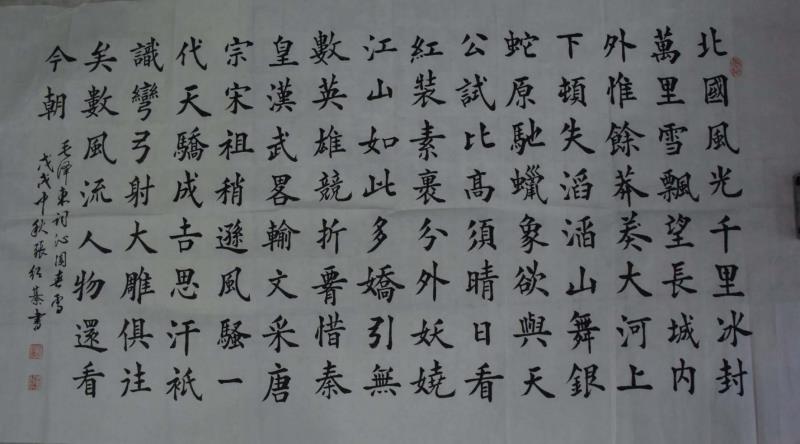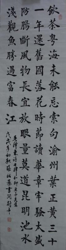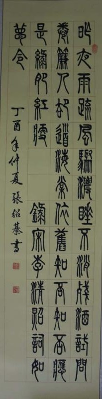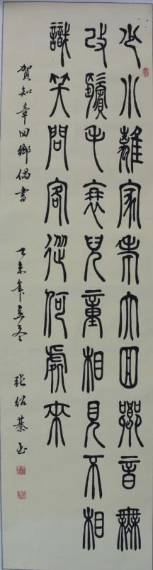 张绍綦,今年七十七岁,自幼喜爱书法,临习楷、行、篆、隶、诸书体参加省市书展并有获奖,曾获南京长江书画院全国展得金奖,十万艺术全国展铜奖。
