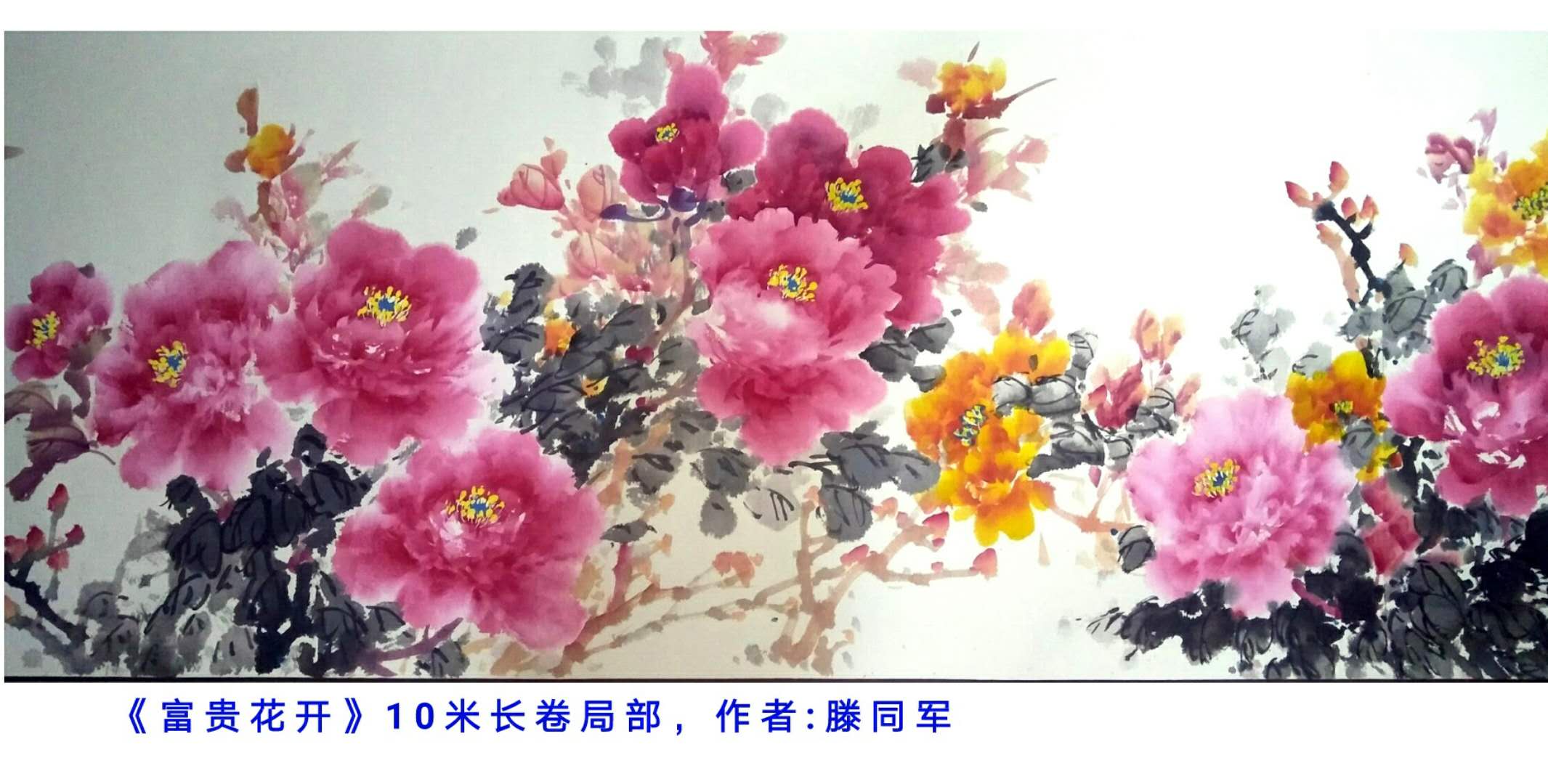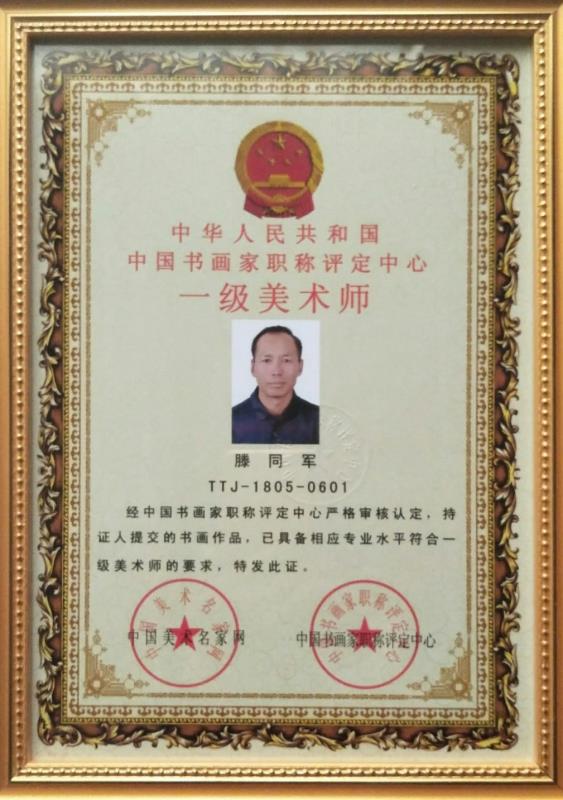 滕同军,1967年生于中国汝瓷之乡,河南省汝州市,现任职于新疆克拉玛依市天香斋工作室、中国工艺美术家协会会员、中国花鸟画协会会员、国色天香画院特邀牡丹画家、陕西省甲申书画院画家、金网书画院院士。自幼爱画,初入中国书画函授大学——汝州分校系通学习中国画的基本知识,后进修美院花鸟画高研班深造,曾拜多位花鸟画名师学习各派风格。并坚持继承传统花鸟画理论技法知识,潜心研究现代名家绘画技法,多年来创作出大量牡丹精品艺术作品,逐渐形成一套自已独特牡丹画风格。作品多次参展,获奖,并收藏,曾为振灾义务捐献牡丹作品,奉献爱心。授予“爱心艺术家“荣誉称号,他的作品画面稳重,构图巧妙,色彩典雅,花姿美观大气,润泽灵动,近年来作品先后发表在《风穴文艺》,《艺术风采》,《艺韵阁》,《大美中国》,《大道传薪》,《中国当代书画家辞典》,等书画艺术刊物上收录发行,近来按老客户强列要求选入一部分作品编辑成册《滕同军写意牡丹画集》一书出版,滕同军创作的巨幅《盛世中华》,《国色神韵》,《一路国色长卷》等作品被多家书画艺术网站,新闻煤体,拍卖机构争相报导并推广合作。作品入选“一带一路“文化名片一一中国艺术名家世界邮票文化纪念珍藏册,景天艺术全国40位实力派书画书家联赛。全国20名实力派书画家改革开放40周年《国宾国礼》珍藏精品毛瓷系列, 滕同军对艺术上的坚持不懈,勤奋追求,勇于创新,他笔下不同规格的牡丹精品之作,多被藏友定购收藏,并被称为当代民间最具艺术收藏潜力的艺术家称号。