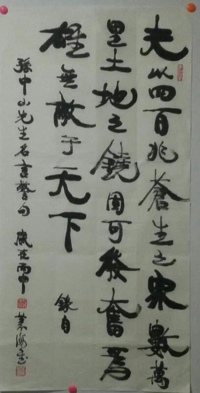 对于康体书法,姬义海老师是在一个练习的过程中偶然得之。于是,他遍寻康有为书法作品,研究康体书法特点与风格。他发现,康体书法笔画平长,转折多圆,运锋'自然,结构舒张,都有一种纵横奇逸,圆浑苍厚,恣肆开张的奇宕之气。对于康体这种魄为雄强,气象浑穆,点画峻厚,骨法洞达的气派,姬义海不仅仅是喜欢热爱了,而是到了一种痴迷的程度。康体书法在不同时期,风格亦不尽相同。姬义海从康体诸多风格中十请选一种,从苦苦临摩到肆意发挥,並融入了汉简,汉隶及多家书体笔意,终于形成既不失康体风骨,又有新的创意的效果。