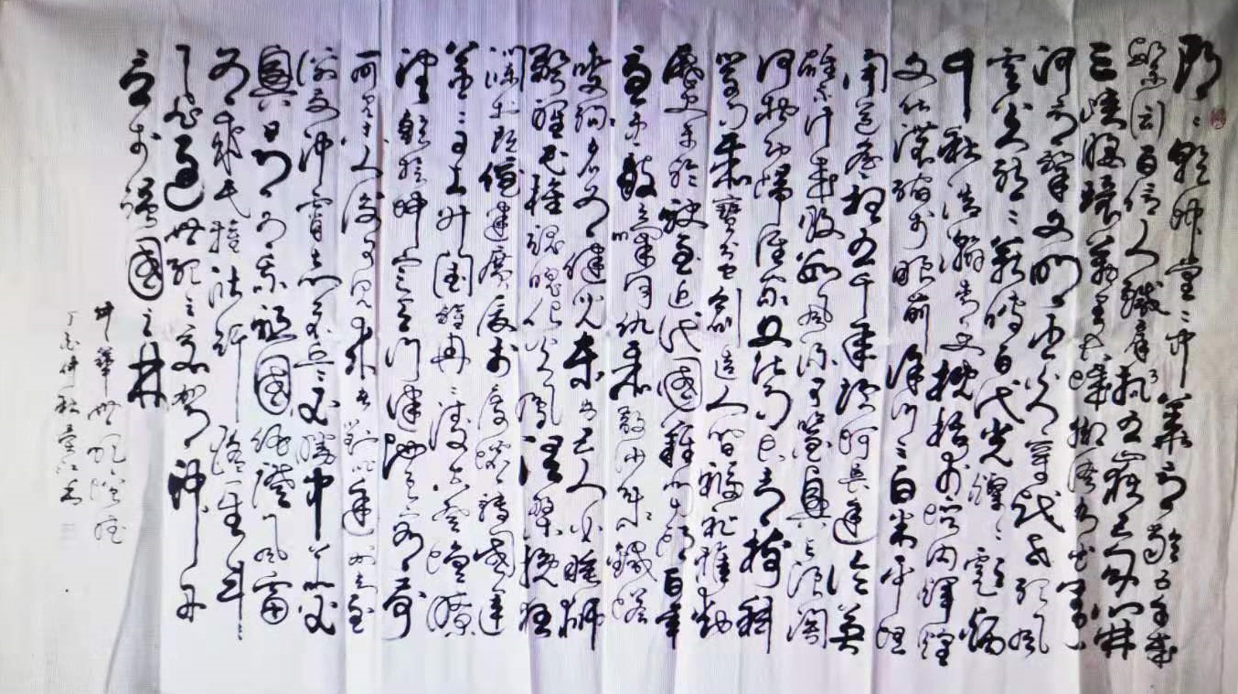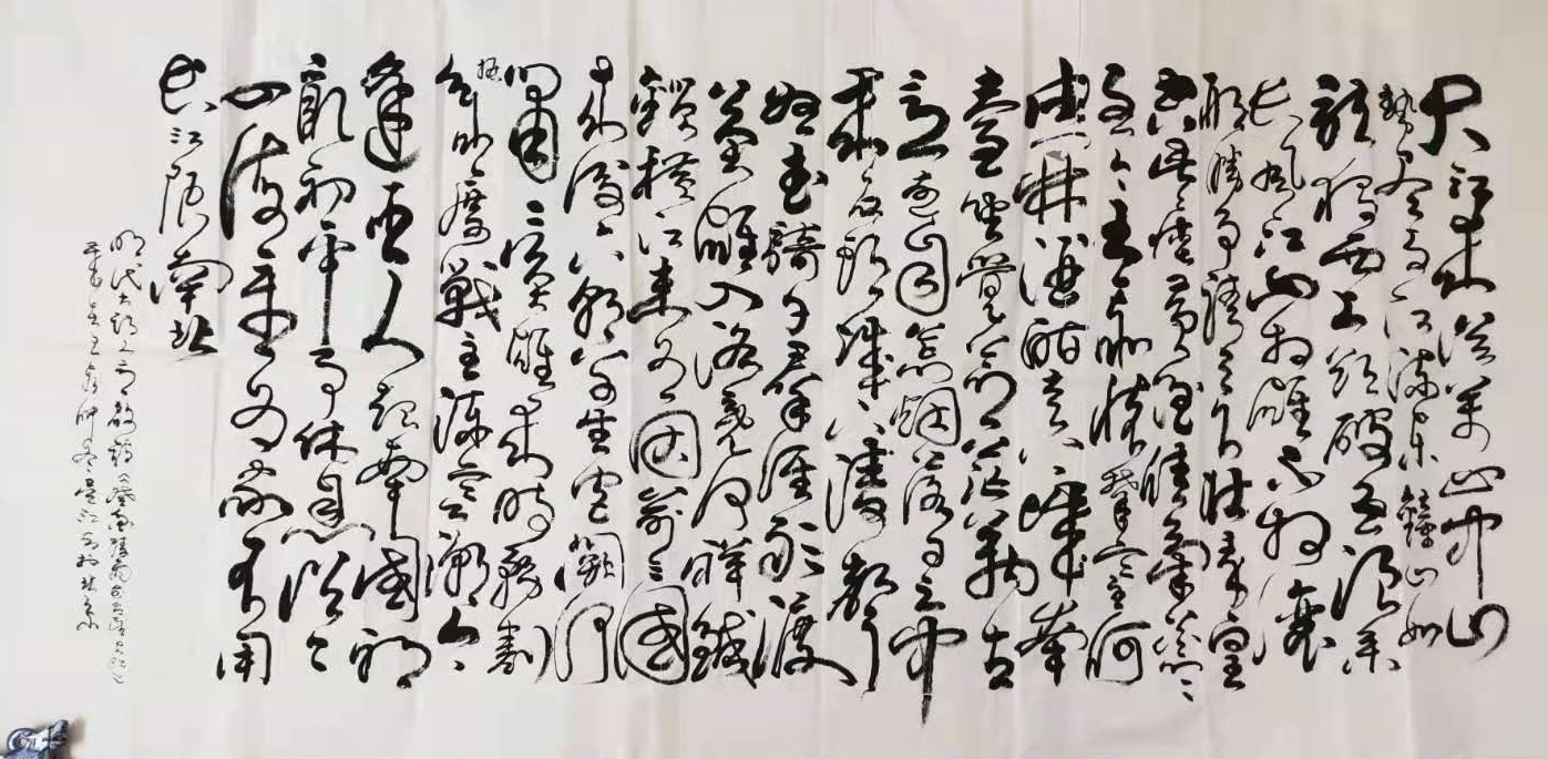 2008年退休后,全身心投入书法艺术的研究和实践,主要研习行书和草书、兼学其他书体。拜草书字汇为师,进行临摹和创作。其中,草书以王羲之、怀素、张旭、黄庭坚等为主,以他们的书、帖为范本,每天用近十余个小时的时间研习,结合汉赋、唐诗、宋词、元曲和他诗词等进行书法创作,每个字都是按照先辈高人的墨迹临写。十几年的光阴,本人已用历代书法大家们的字,汇集成了大量巨型书法作品。