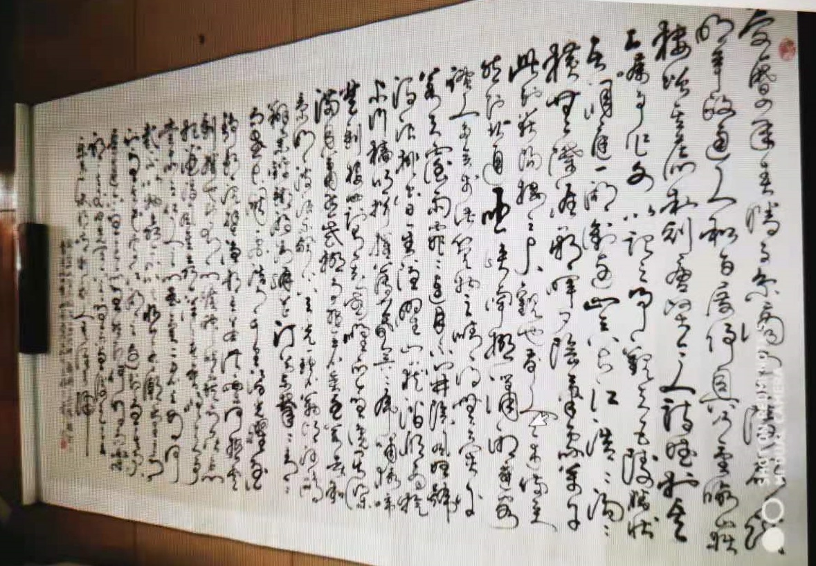 2012年夏,一个足迹遍中华的江南字画商,在一次书画洽谈会上,见到本人书作《春江花月夜》,大加赞赏,戏称为“吴带当风”。