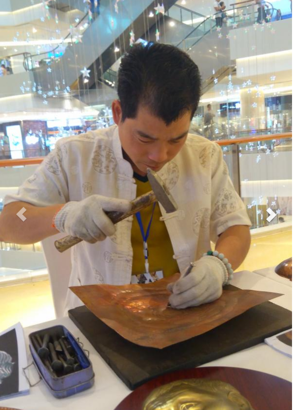 刘福喜, 郑州市非物质文化遗产代表性(金属浮雕)传承人,河南省工艺美术协会会员,河南省民间文艺家协会会员,河南省文化产业研究会会员。