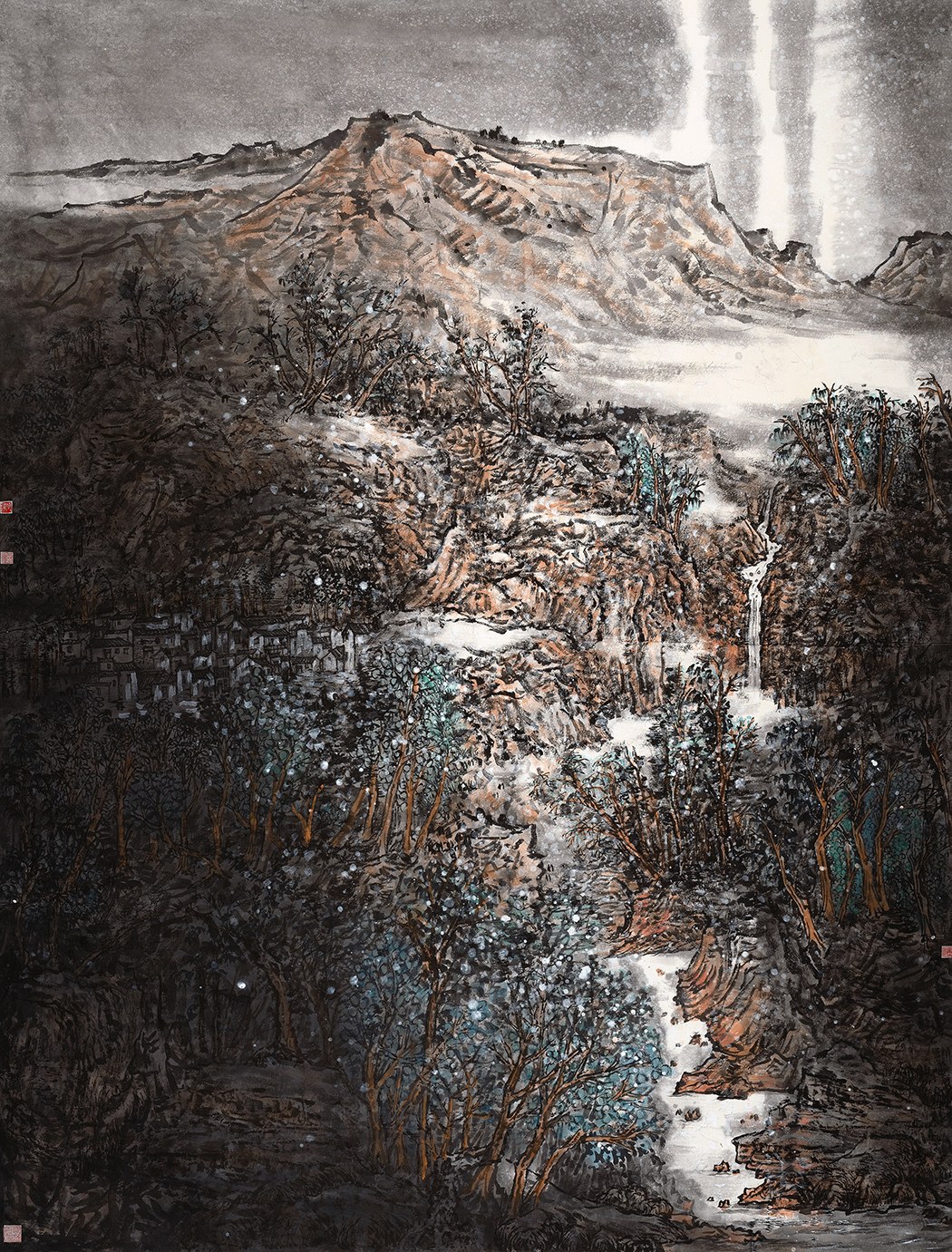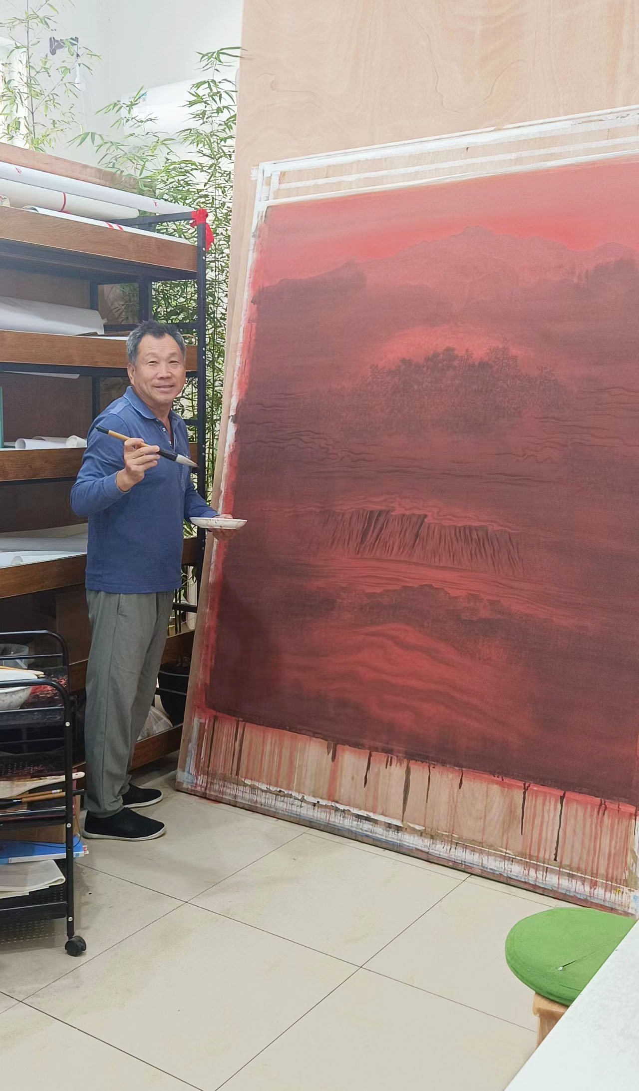 军人气质,泼墨大胆,求神求变,水墨写意求韵,追求反映时代心声,个性独特。