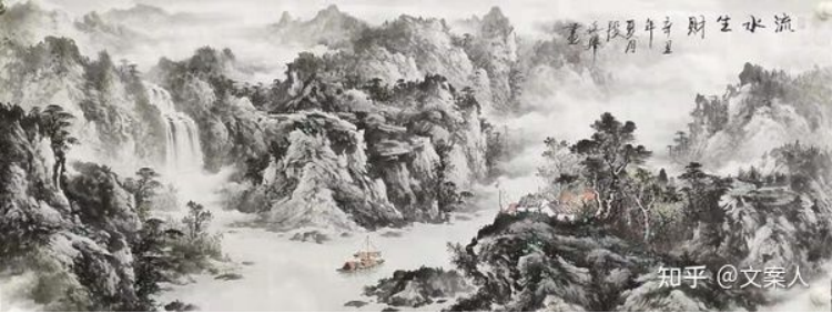 他的山水善作浓墨重彩很有胆识,写意浑厚华滋的山水意象非常执着。用墨可积亦可破,用彩可破亦可泼。积墨时层层复沓,由浓复淡,以湿沓干,七八层乃至十几层,不会一踏糊涂,而是层次分明,形成苍劲秀润的水墨气象,清凉世界此是典范。重彩山水既有沈周仇英山水的艳雅之品,也有唐代壁画式的皇家气象。如若泼彩必是大风堂的丰神多姿,把傅抱石泼彩山水的功夫表现得淋漓尽致,色彩流动意象如梦如幻。具象里有抽象,抽象里有具象,山水唯美莫过于些!他的山水作品从水墨到青绿,再到浅绛、重彩,体系庞大无所而不能绘,绘之必是精彩!