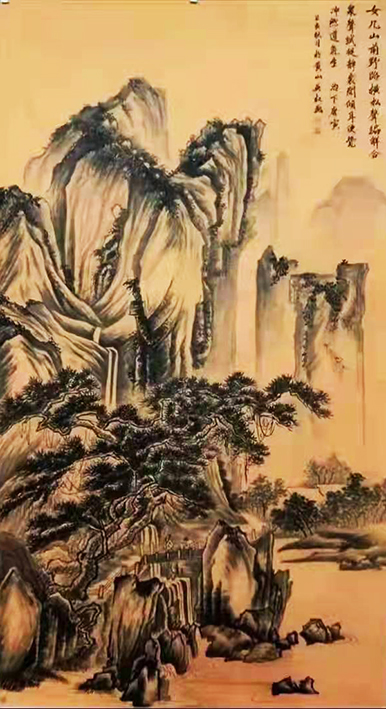 张英权老师与恩师王召海老师合作巨幅山水并合影留念