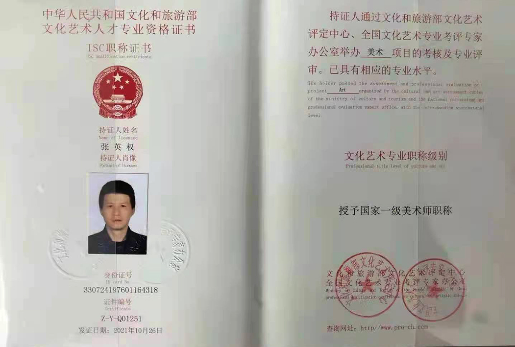 张英权,号长乐,1975年出生于“木雕之乡”浙江省东阳市。现为国家一级美术师,中国国画艺术研究院院士,浙江民间书法艺术家,专门从事书画艺术研究与创作。师承李宝林大师之得意门生王召海老师,学习国画创作,并进修于中国美术学院国画系山水班。