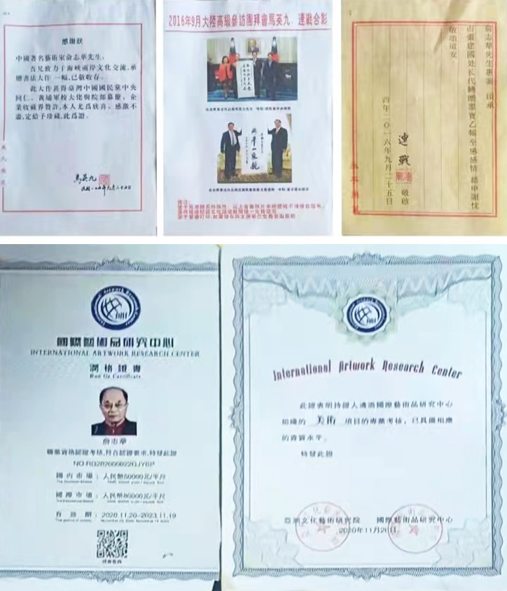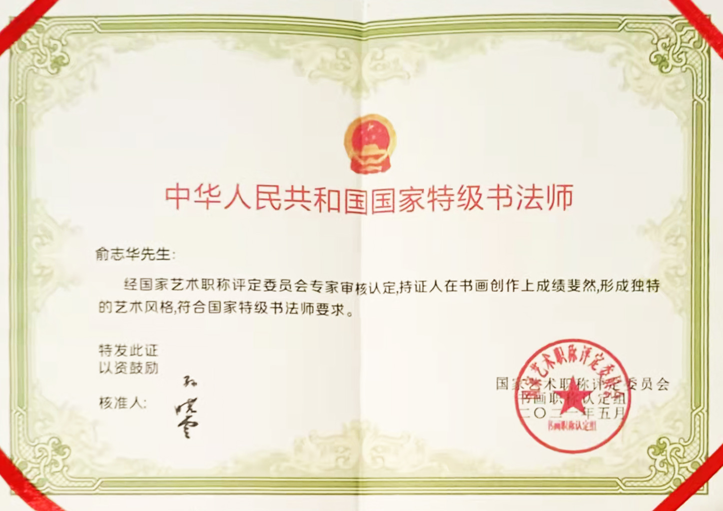 俞志华先生,号石龙山人,1947 年生,浙江杭州人。国家一级美术师,中国书法家协会会员,中国美术家协会会员,中国楹联学会会员,台湾故宫博物院书画院荣誉院长、终身客座教授,世界科教文卫首席艺术家、执行委员,英国牛津大学艺术系博士生导师。